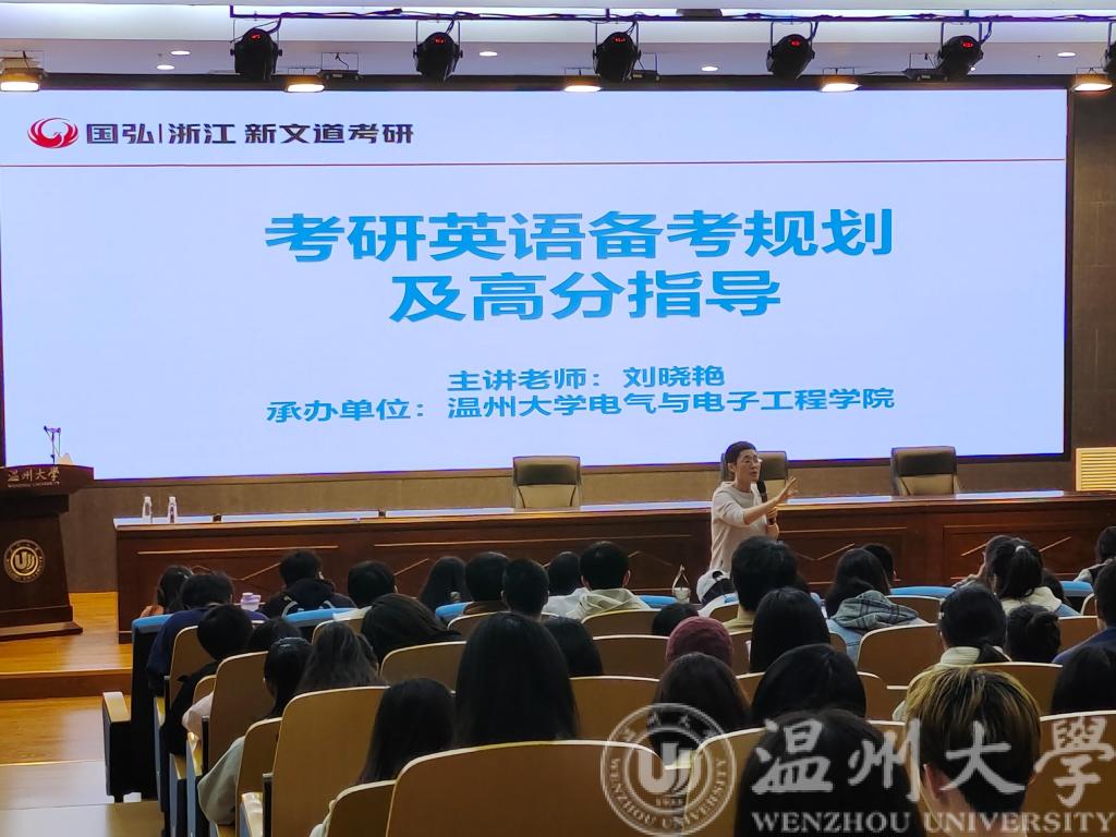 为进一步营造积极向上的考研氛围,助力学生规划考研之路,2023年3月31日下午14:40,MG冰球官网联合浙江新文道考研机构在岩松堂步青厅开展考研英语专题讲座。本次讲座邀请到国内考研英语名师刘晓艳为同学进行英语备考规划和指导。本次讲座吸引了近300余名同学参与。