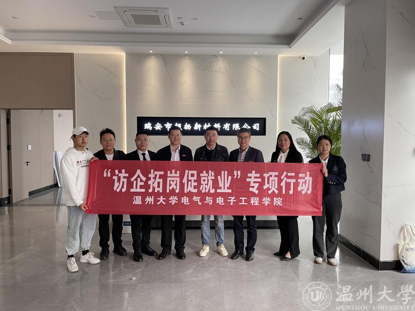 在九十周年校庆即将到来之际,为了更好地加强与校友间的沟通交流,搭建母校与校友们的互动平台,同时也为了促进毕业生留温以及学生的高质量就业,4月12日,我校党委委员、组织部部长郑信军及MG冰球突破官网网站党委书记李方强、党委副书记曾蓓蕾、实验中心教师王环、学工办辅导员屠昌浩一行人带领学生走访了校友企业——瑞安市超扬新材料有限公司。该公司系MG冰球官网05届校友岑帆于2010年11月创办,主要经营范围为新型材料包装产品制造、销售等。