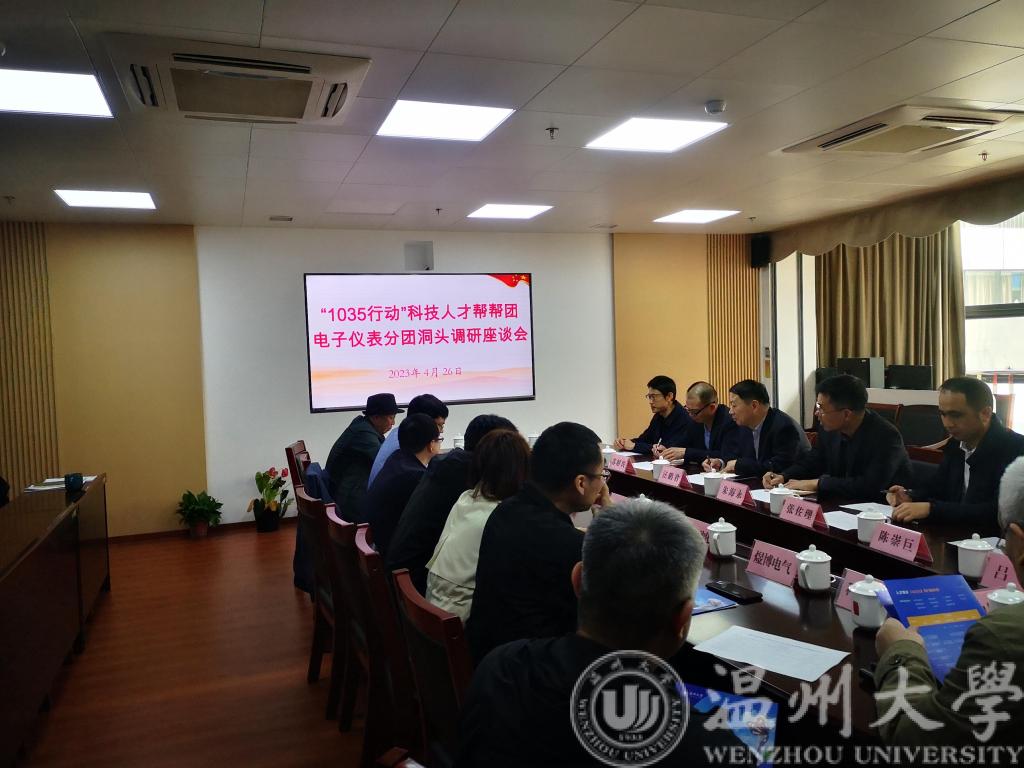 为深入贯彻落实党的二十大精神和中央促进共同富裕、省委“两个先行”决策部署,根据市《关于开展人才引领山区海岛县共同富裕“1035行动”的实施意见》目标要求,科技人才帮帮团-电子仪表分团团长汪鹏君教授携MG冰球突破官网网站、温州职业技术学院相关人员一行10人于4月26日前往洞头区科技局及科技园调研电子电器产业技术堵点及需求。