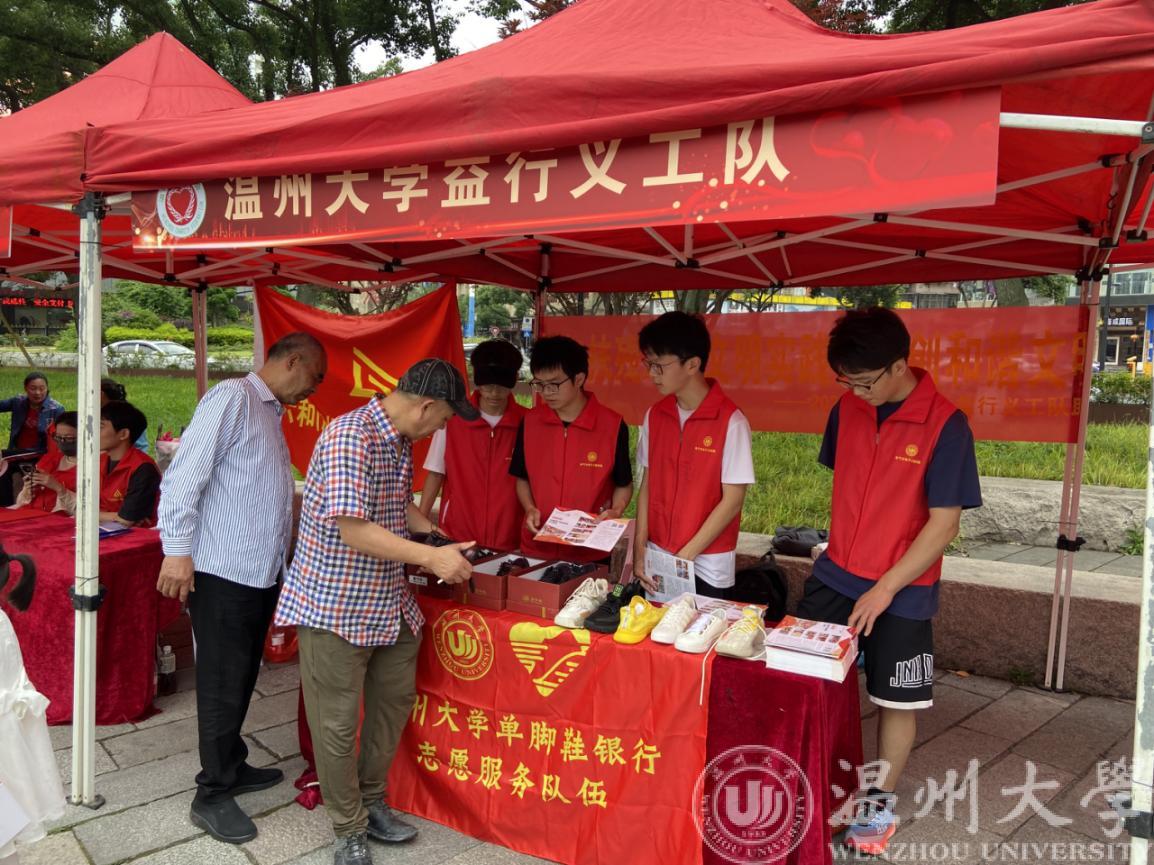5月20日上午,亚运有我.义工同行”暨温州市第八届“慈善一条街”慈善公益服务活动启动仪式在鹿城区中山公园中山桥广场举行,MG冰球官网单脚鞋银行志愿服务队参加了本次活动并在服务集市中为群众开展服务。