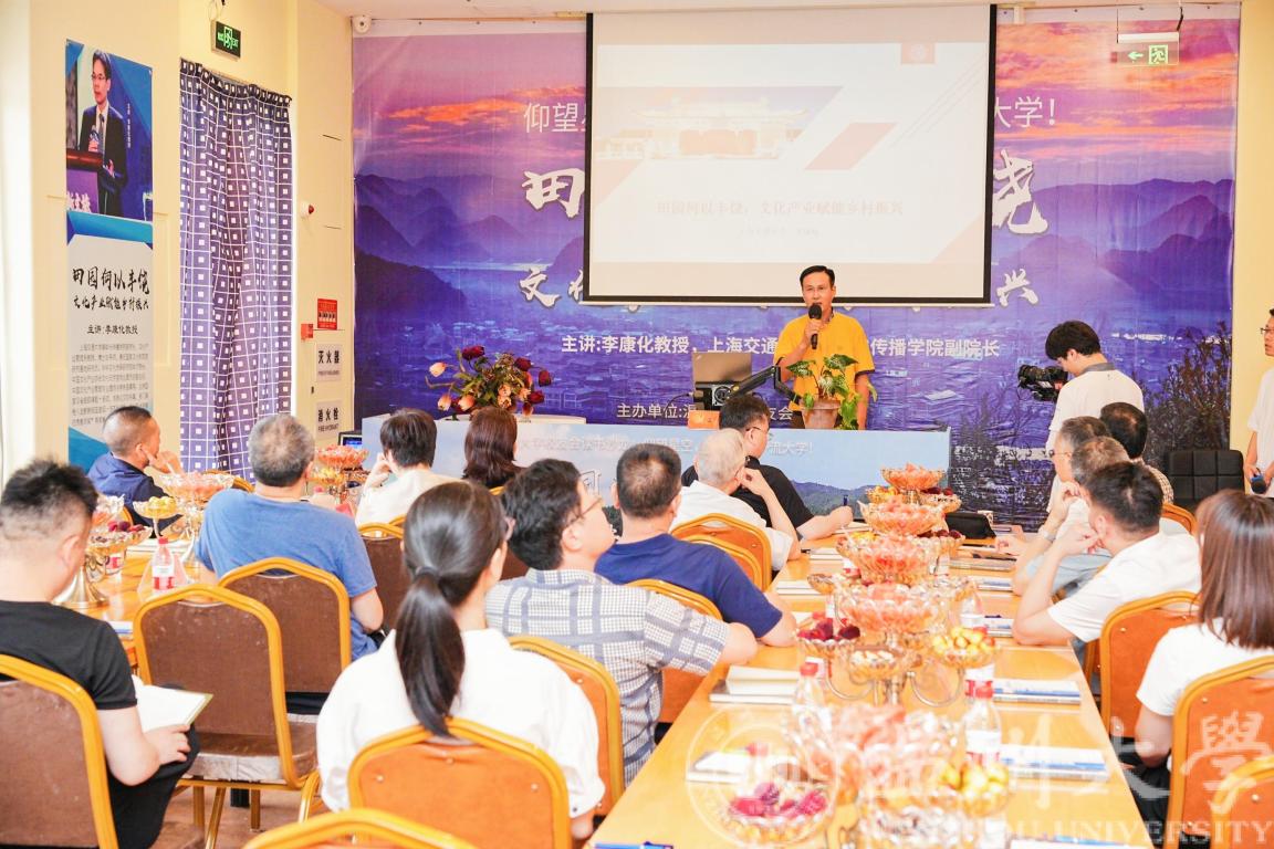 MG冰球突破官网网站优秀校友、上海交大媒体与传播学院副院长李康化教授围绕《田园何以丰饶:文化产业赋能乡村振兴》作了主题分享。李教授就文化产业赋能乡村振兴的背景、重要性、举措和高校作为等四个方面展开分享,深入浅出的汇报引来现场校友的思考和阵阵掌声。