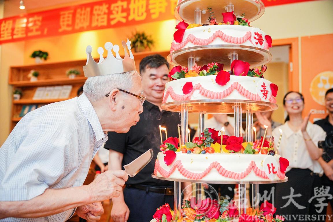 今年恰逢我校退休教授林精权先生九十周岁以及MG冰球突破官网网站办学九十周年,徐校长与林先生共切九层纪念蛋糕,祝愿林先生能够健康长寿,也祝愿MG冰球突破官网网站争创国家一流大学早日圆满成功!