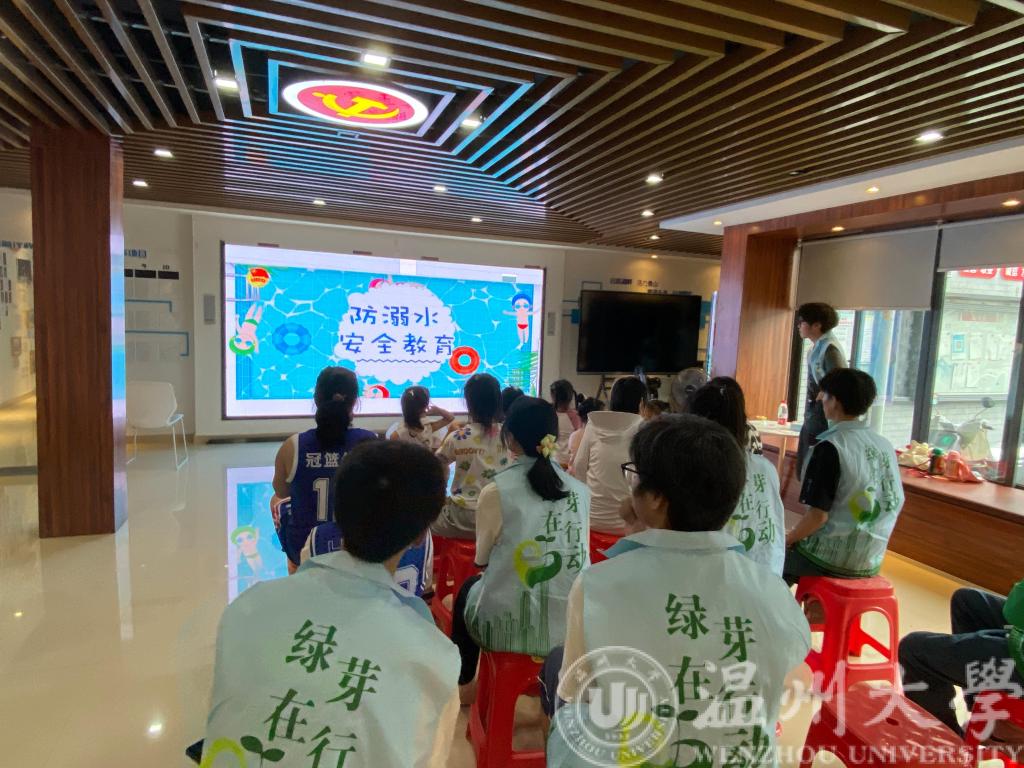来到将军社区,李方强书记一行首先观看了绿芽实践队的“小老师”们开展的防溺水安全教育主题公开课和防溺水知识竞赛等活动。炎炎夏日,暑期来临,儿童青少年“防溺水”工作也成了重中之重。实践队成员张俊伟同学带领家长和小朋友们观看了溺水宣传视频,视频中溺水的惨状和超高的发生率让大家震惊。紧接着,开始游戏互动环节。小朋友们争先恐后的回答有关防溺水的问题。同时,在防溺水安全教育中,实践队成员着重向小朋友们介绍了“防溺水六不法”和“救溺五步法”的知识。