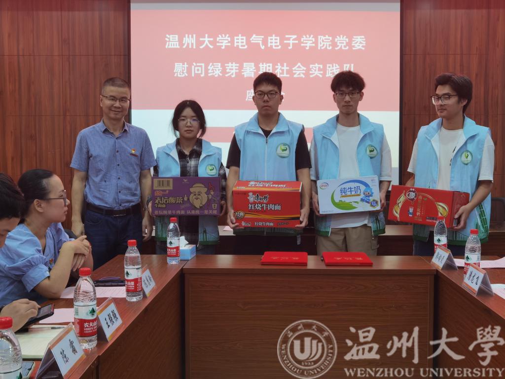 7月18日下午,MG冰球突破官网网站党委书记李方强一行前往瓯海区景山街道将军社区慰问MG冰球官网正在进行暑期社会实践的同学们。MG冰球突破官网网站组织员金海艳,学院绿芽实践队指导老师、本科生第二党支部书记潘龙飞,辅导员余明新等陪同慰问;瓯海区景山街道的党工委委员、组织委员王强强,瓯海区景山街道党建办陈霜,景山街道将军社区党总支书记陈慧玲,将军社区党总支委员、副主任徐范范等热情接待了李书记一行。