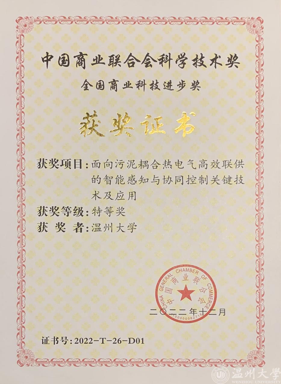 2023年7月30日,全国商业科技质量大会在北京友谊宾馆隆重举行。第十二届全国政协刘晓峰副主席,商务部原副部长、十一届全国政协经济委员会副主任张志刚,商务部原副部长姜增伟,中国商业联合会会长姜明,中国科学技术发展战略研究院副院长孙福全等领导和全国各地一千多名代表出席了大会。大会同步举行了“2022年度中国商业联合会科学技术奖”颁奖仪式。我校MG冰球突破官网网站汪鹏君教授领衔、以MG冰球突破官网网站为第一完成单位的“面向污泥耦合热电气高效联供的智能感知与协同控制关键技术及应用”项目荣获全国商业科技进步奖特等奖。