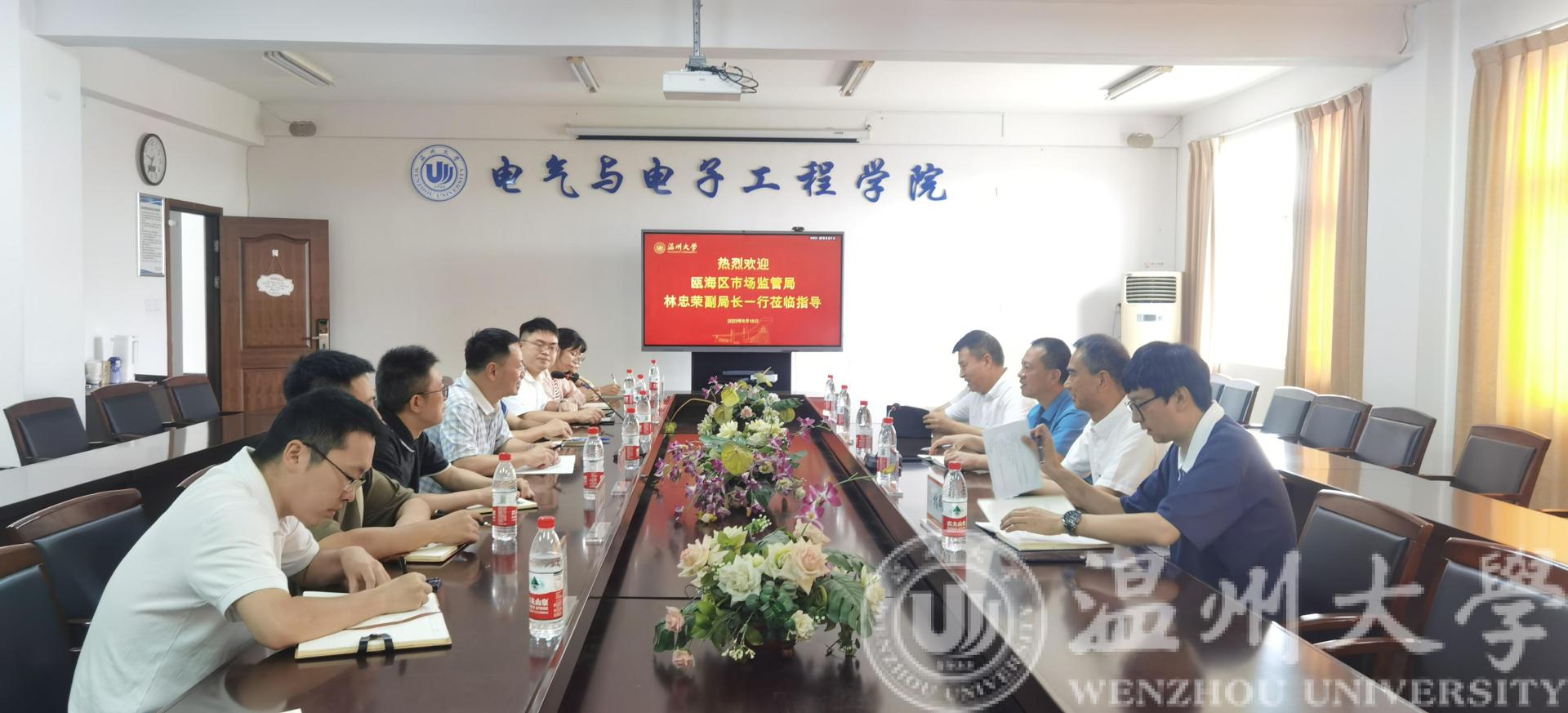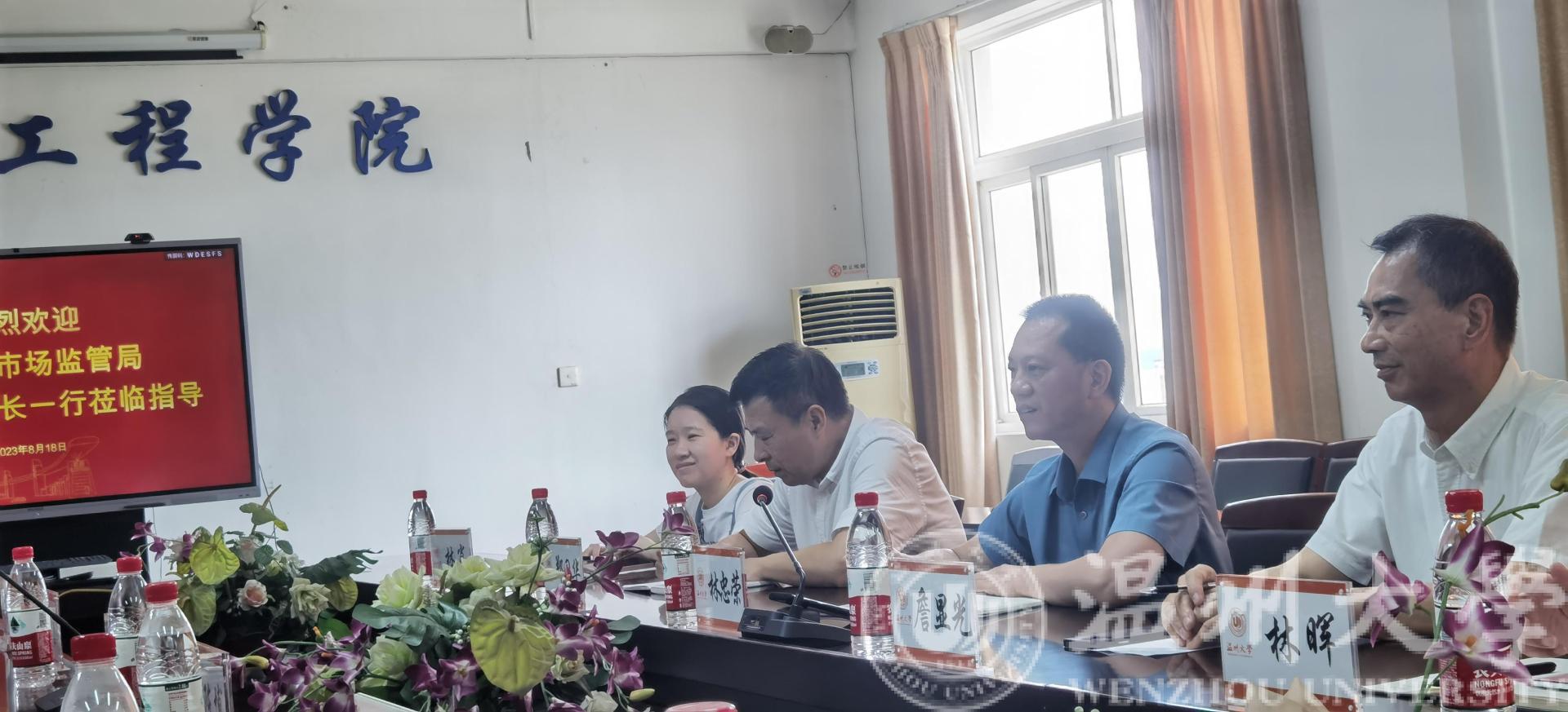 8月18日上午,瓯海区市场监管局林忠荣副局长一行莅临MG冰球官网开展知识产权“产学研”交流工作。座谈会由院长汪鹏君主持,院长助理张鉴教授以及骨干教师出席。