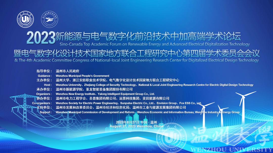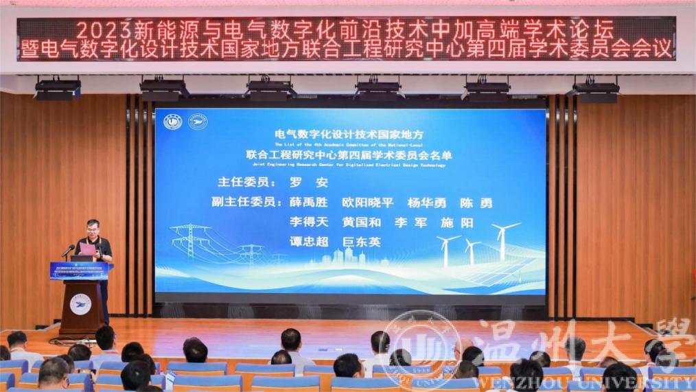 8月27日,由MG冰球突破官网网站、浙江安防职业技术学院和电气数字化设计技术国家地方联合工程研究中心联合主办的2023年新能源与电气数字化前沿技术中·加高端技术论坛暨电气数字化设计技术国家地方联合工程研究中心第四届学术委员会会议,在温州成功举办。17位中外顶尖人才及数百位专家学者,通过线上线下相结合的方式参加了会议,共同探讨新能源前沿技术及产业的发展。温州市副市长王振勇莅临大会指导并致辞。