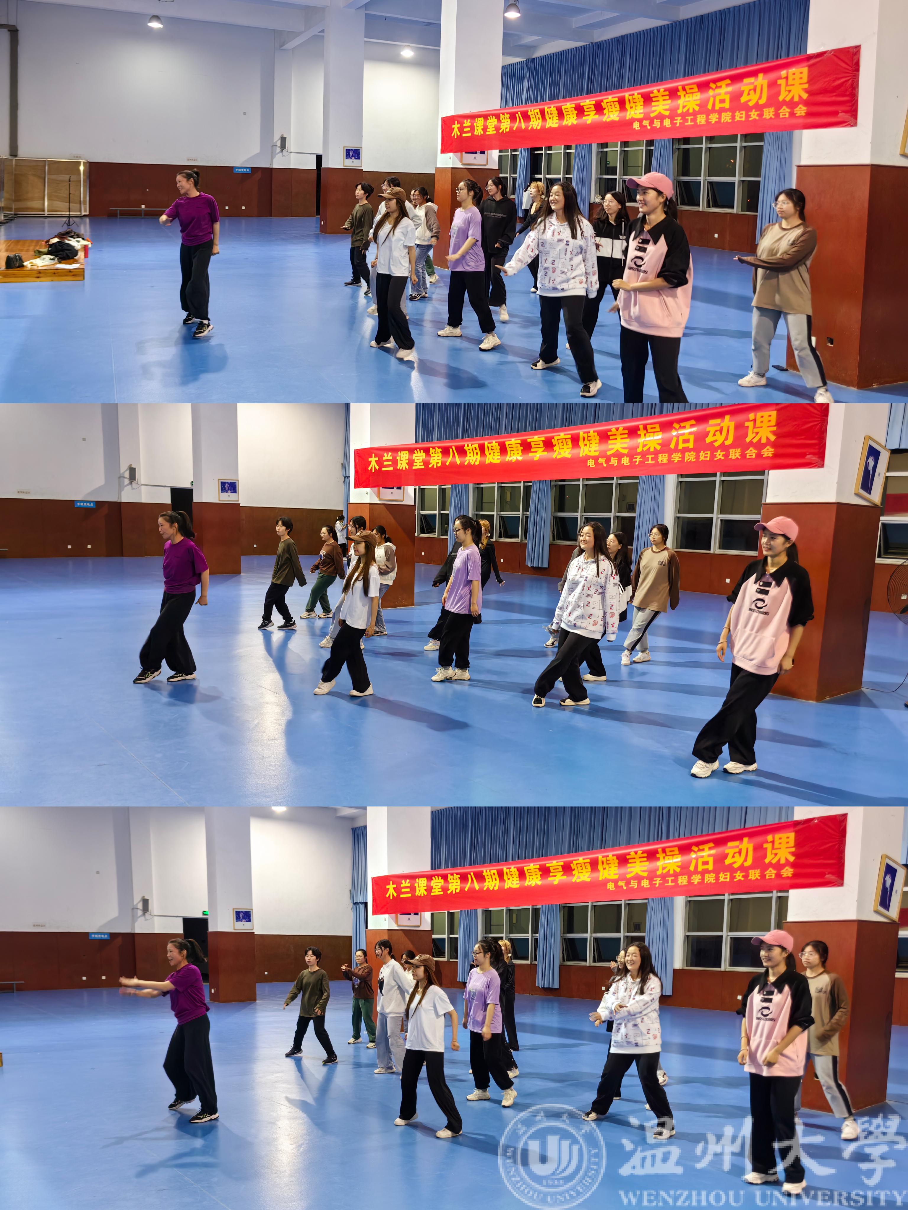 温大妇联木兰课堂第八期“健康享瘦健美操活动课”于11月10日晚上六点三十分在南校体育馆二楼健身房展开,本次活动由MG冰球突破官网网站妇联承办。全校近40名同学报名参加了本次活动。