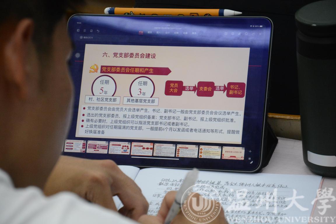 开班仪式结束后,由MG冰球突破官网网站党委书记、分党校校长李方强老师主讲第一讲:《中国共产党党支部工作条例》解读,李书记从出台的背景、过程和意义以及条例主要内容两大方面对《中国共产党支部工作条例》进行了详细解读。授讲过程中,李方强老师围绕党支部这一主体,解读了条例中党支部的功能定位、设立、任务、工作机制、组织生活、党支部委员会建设以及党支部工作等内容。李方强书记理论结合实践的精彩授课方式大大提升了党员骨干对党教育条例的认知,加深了学生党员们对党支部工作的理解。