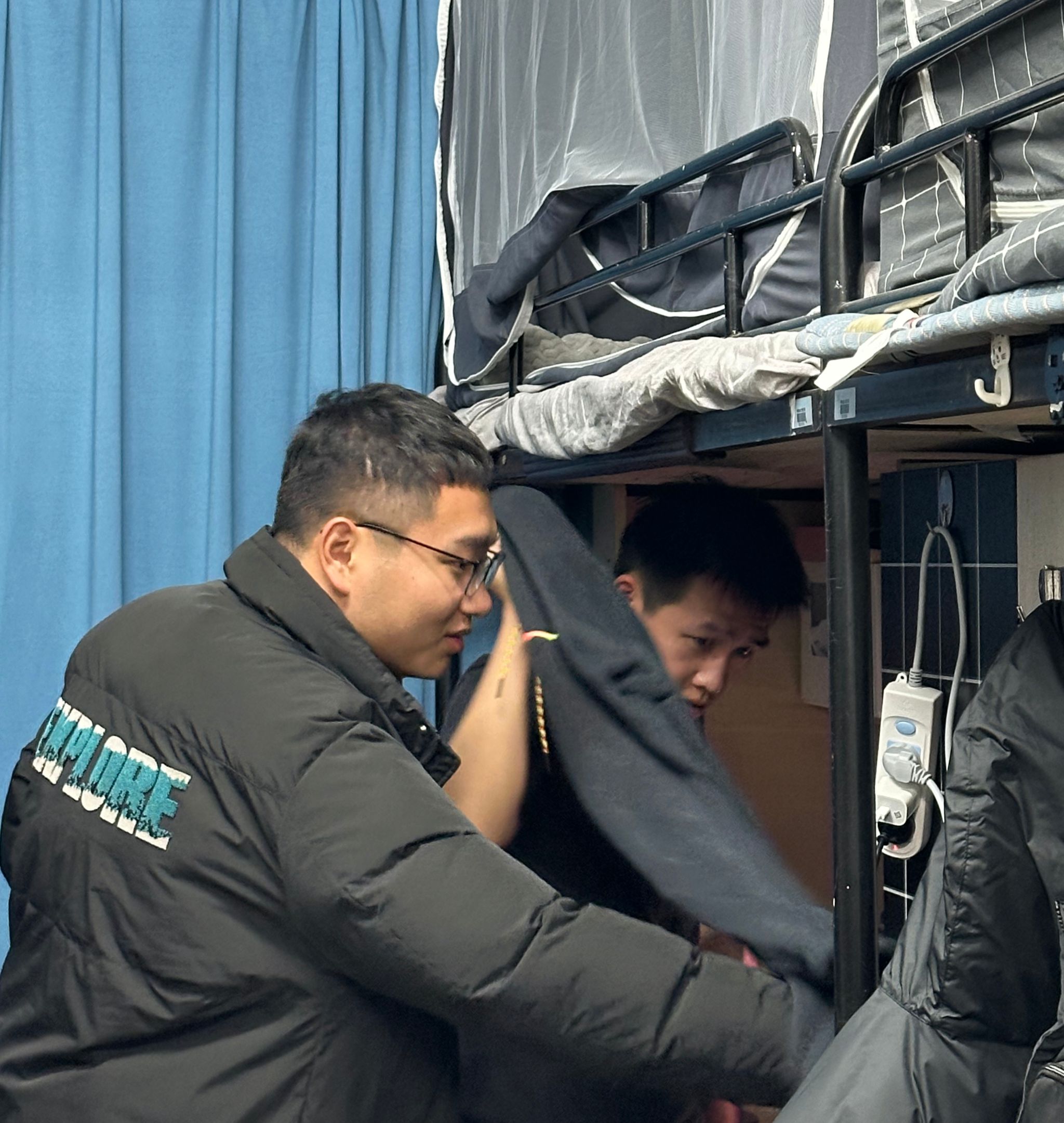 老师们深入到学生寝室进行安全注意事项提醒和安全隐患排查,向同学们强调了寝室消防安全的重要性,提醒同学们遵守学校的安全管理规定,不私拉乱接电线、不使用违规电器、严禁进行宗教活动。此外,辅导员们还针对即将到来的寒潮进行了提醒,让同学们做好防寒保暖工作,合理安排作息时间,注意保暖。
