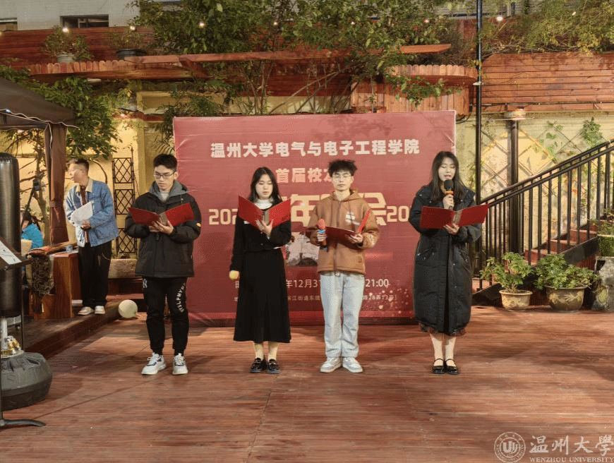 晚上,举办了首届校友会跨年晚会。晚会由副秘书长潘道品主持,校友代表及部分师生参与。晚会在MG冰球官网23级四位同学的诗朗诵《天南海北师生情》中拉开序幕,同学们的朗诵声情并茂,诉说着一段段难舍难分的同学情与师生情。潘龙飞老师献唱的《海阔天空》勾起了校友们对青葱岁月的美好回忆。随后,校友们表演了古琴、洞箫和舞蹈等精彩节目,晚会在师生的欢笑中达到高潮。