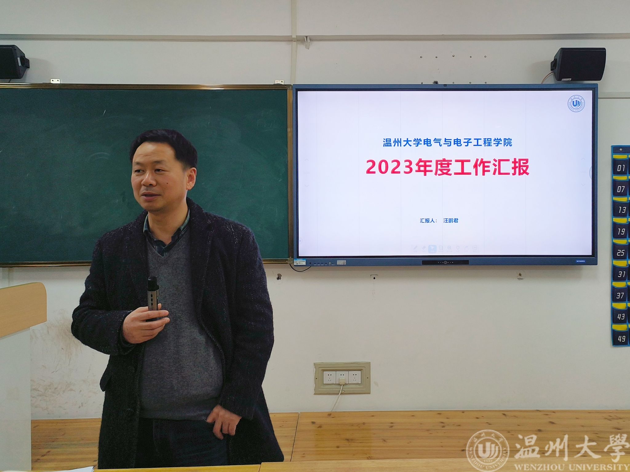 接着,院长汪鹏君从人才培养、学科科研、师资队伍、地方服务、党组织建设5个方面对2023年度工作进行了总结,并提出2024年工作计划,强调以“博士点申报及建设为龙头,党建和业务相融合,全面推进人才培养、师资队伍、科学研究、服务地方、学院文化、国际化办学等工作高质量开展,争取1-2个标志性成果”为年度目标,围绕重点项目和主要任务进行工作部署。同时还特别强调了国家基金项目、升博培育攻坚项目等方面事宜。