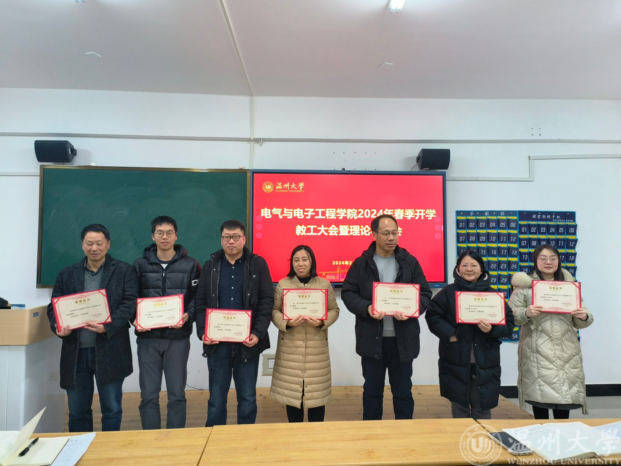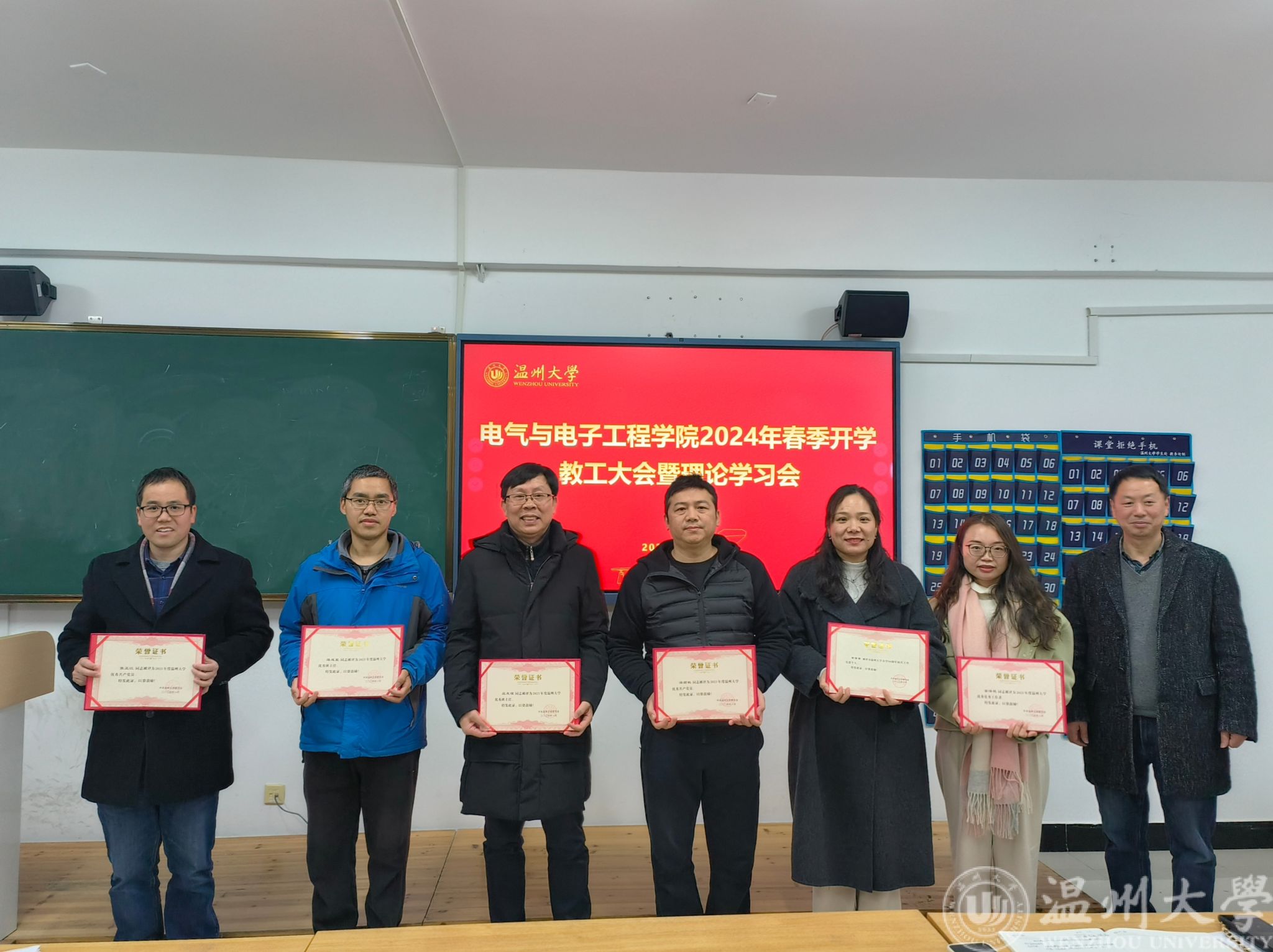 会议开始,进行了2023年度表彰先进仪式。包括表彰校级优秀教师6人、优秀教育工作者2人、优秀党员4人、优秀党务工作者2人、优秀班主任1人、优秀辅导员1人、90周年校庆优秀个人1人以及院级优秀党员14人。