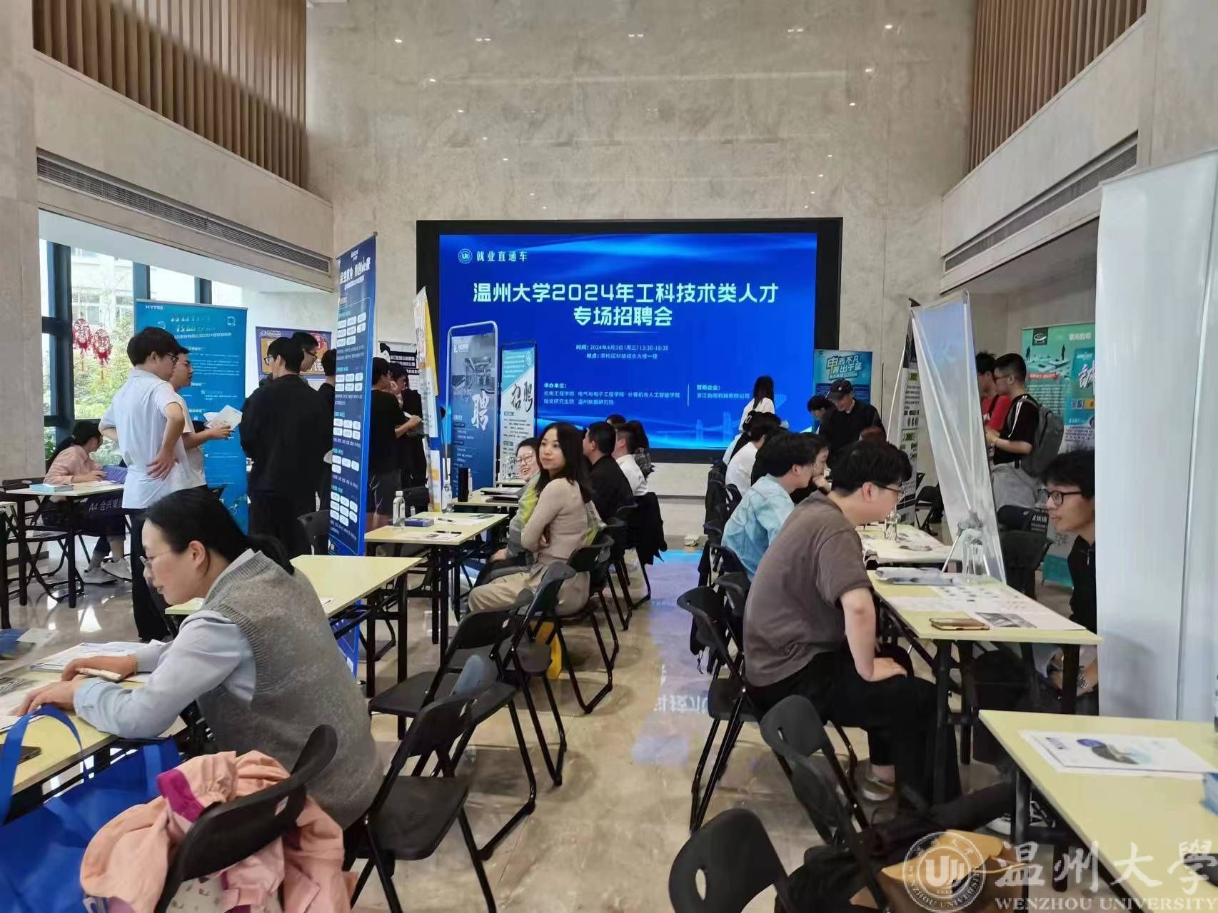 本次招聘会吸引了芯联集成电路制造股份有限公司、天信仪表集团有限公司、浙江恒捷通信科技有限公司、温州市诚芯电子有限公司等50余家优质单位前来参会,共提供1855个岗位,现场参会企业收到上百份简历。除了应届毕业生到场求职之外,MG冰球官网不少低年级本科生和研究生也到现场参观学习,主动掌握最新的就业市场情况。