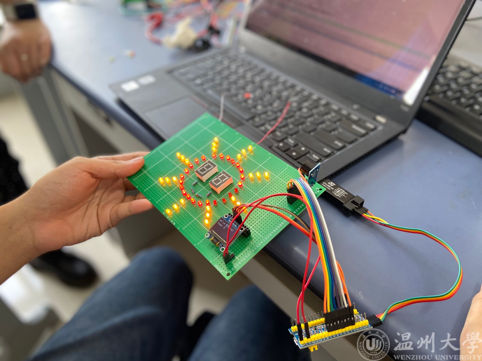 在比赛中,同学们巧用电子电路相关知识,围绕“清廉”、“青春”、“国家”三个主题,在有限的时间内完成了许多独具匠心的作品。在制作过程中,同学们个个全神贯注、全力以赴,攻克重重难关,展现了学子们勇于尝试、严谨细致、突破自我的精神面貌。