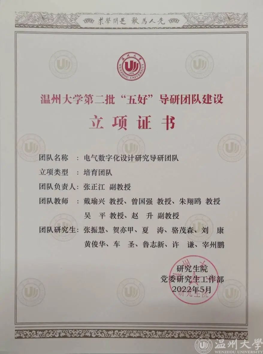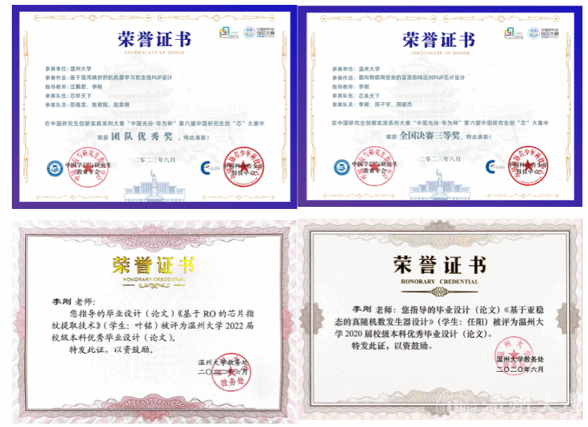 近5年指导学生获浙江省“新苗计划”项目、“大学生创新创业训练计划”项目和“研究生创新基金”项目共9项,指导研究生获得中国研究生创“芯”大赛全国决赛三等奖5项、团队优秀奖1项,指导本科优秀毕业论文2篇;所在的集成电路与智能系统导研团队荣获MG冰球突破官网网站第一批“五好”导研团队。