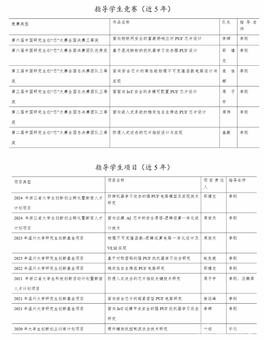 李刚同志在科研工作方面,勇于创新,思路开阔,科研能力突出,带领研究生工作在科研第一线。在科研工作中,不断探索科研新思路,追踪科技前沿,主要从事安全芯片攻击与防御技术、集成电路设计与应用等方向的研究。
