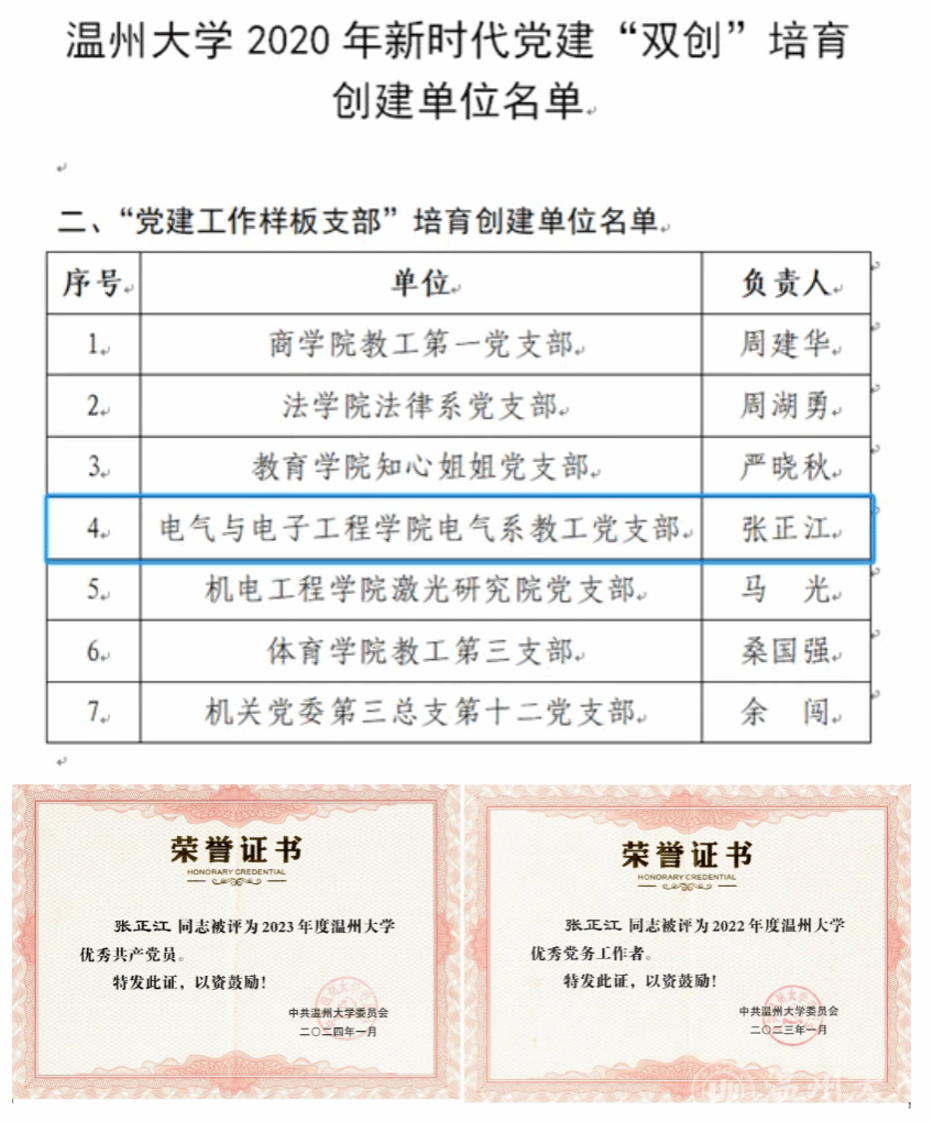 同时,游颖敏同志牢记教师教书育人初心使命,指导学生获得浙江省大学生电子竞赛一等奖两项、三等奖一项,指导本科生完成浙江省新苗计划两项,指导本科毕业设计,学生多次获得校级优秀毕业设计,参与《电子工艺实习》、《电器学》等课程教学,指导本科生毕业实习。