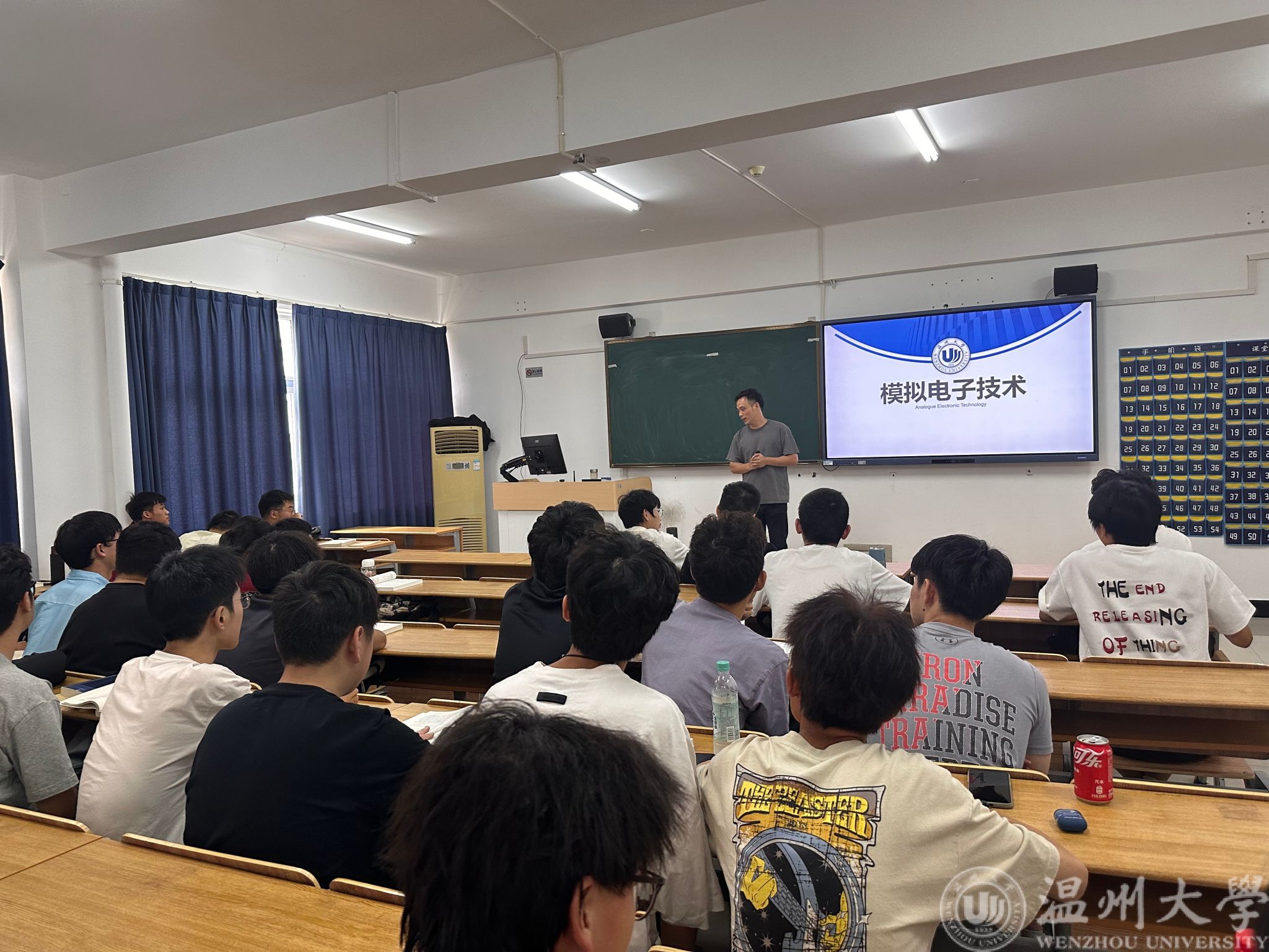 9月10日教师节当天,校党委委员、组织部部长夏春雨,机关党委书记、组织部副部长叶正飞,招标与采购中心主任杜友坚,学校督导组副组长庄友谊等一行莅临MG冰球官网开展开学初听课及教学指导活动。学院教学副院长陈孝敬及学院督导陪同一起走进教室,听取了陈崇巨老师为23集电2班授课的《模拟电子技术》一课。
