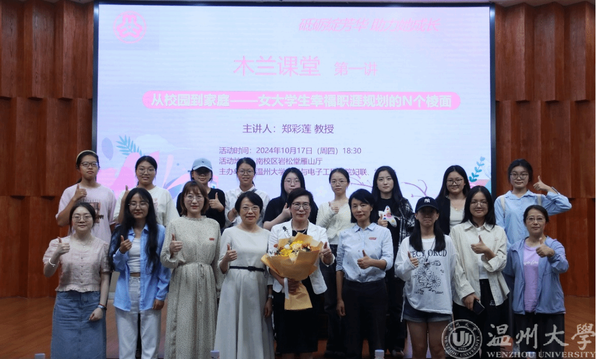 10月17日,MG冰球突破官网网站妇联在南校区岩松堂雁山厅举行了女大学生“木兰课堂”(第一讲)专题讲座。校人事处(人才办)处长兼主任郑彩莲教授担任主讲专家,校妇联主席刘吟、学院党委书记陈文远、学院妇联相关人员出席,来自电气电子学院、数理学院、建工学院、计算机学院、美术学院等5个学院近350女大学生参加活动。会议由MG冰球突破官网网站妇联主席杨硕主持。