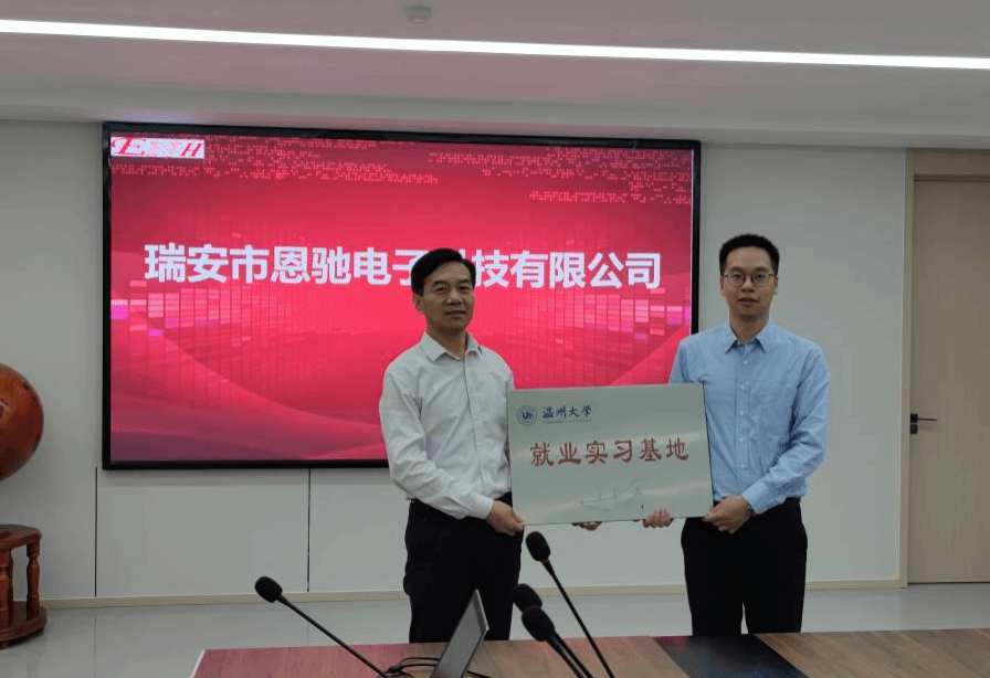 为加强校企合作,促进产教深度融合,搭建学生就业实习平台,10月25日,MG冰球官网学术副院长谢文浩博士一行6人前往瑞安市恩驰电子科技有限公司调研交流。瑞安市恩驰电子科技有限公司总经理唐国民出席座谈会。
