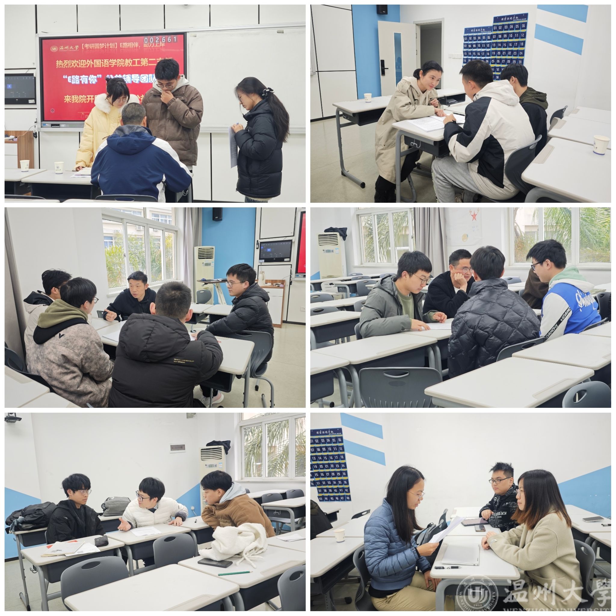 辅导过程中,“E路有你”团队的老师们采用小组教学方式,根据同学们的具体情况提供个性化指导,通过模拟真实的复试场景,从口语表达和听力理解等多个方面进行了深入浅出的教学。老师们不仅分享了宝贵的应试技巧,还就如何提升口语能力及增强自信心提出了切实可行的建议。参加此次活动的学生们一致认为这次面对面线下指导极大地增强了他们的复试自信,提高了个人英语面试水平。