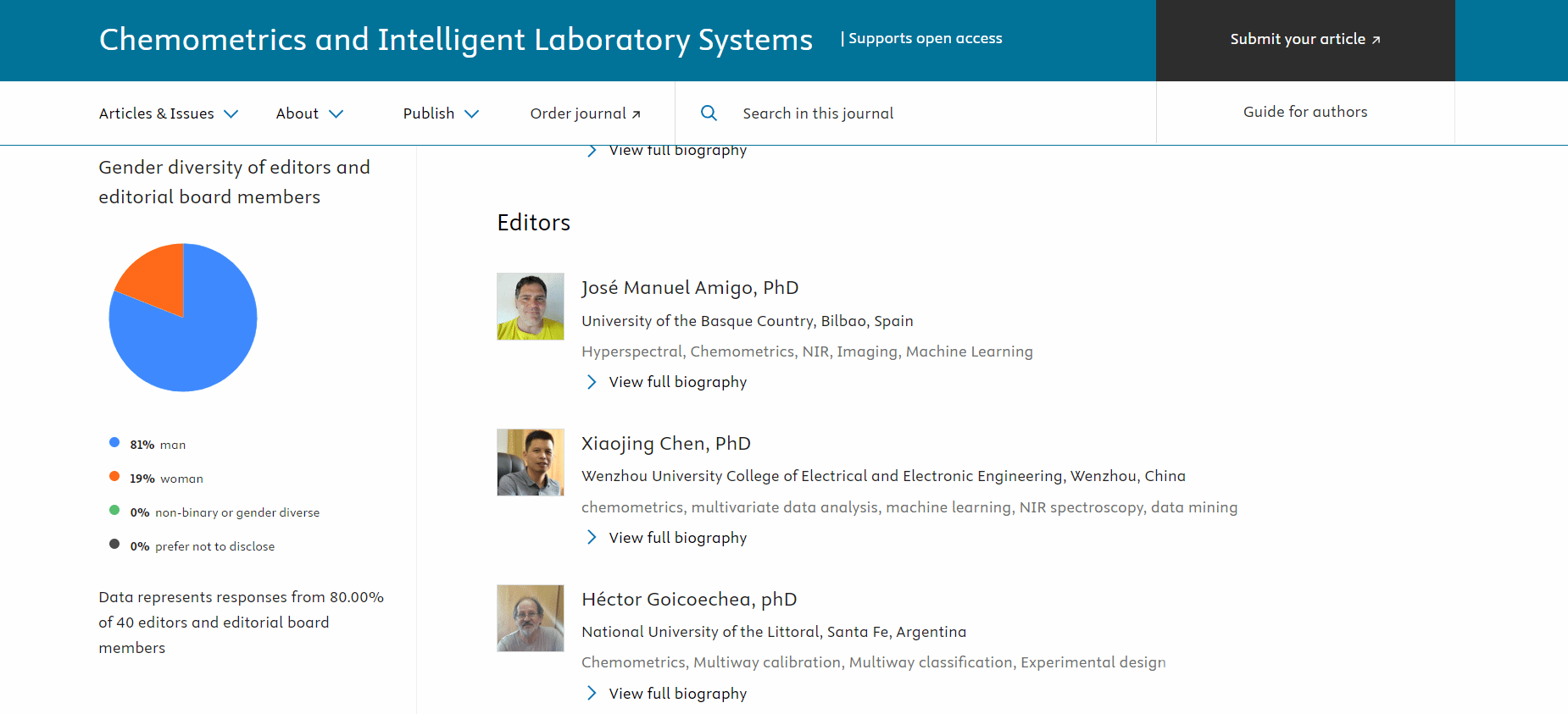 近日,MG冰球突破官网网站陈孝敬教授正式获聘为爱思唯尔(Elsevier)旗下国际权威学术期刊《Chemometrics and Intelligent Laboratory Systems》编辑(Editor),承担副主编职责。此项任命不仅标志着陈孝敬教授本人在化学计量学与智能分析仪器交叉研究领域的学术贡献获得了国际同行的高度认可,更是MG冰球突破官网网站在相关学科学术影响力提升的重要体现。