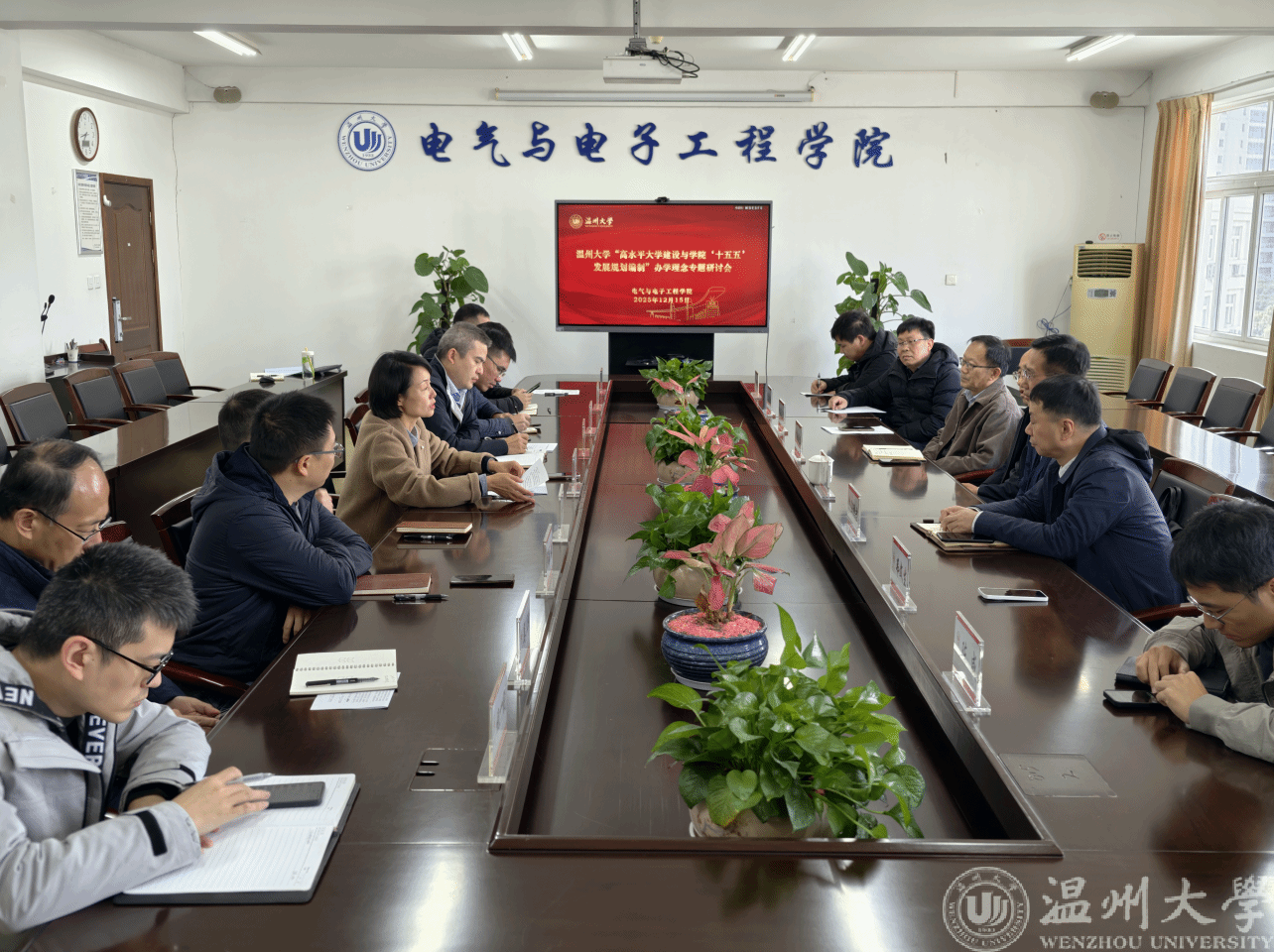 12月15日下午,MG冰球突破官网网站组织召开MG冰球突破官网网站“高水平大学建设与学院‘十五五’发展规划编制”办学理念专题研讨会。学院全体班子成员、高层次人才代表、高级职称教师代表、教师支部书记代表、民主党派教师代表、系主任、专业负责人和科室负责人参加会议,温州市维达电器科技有限公司总经理、1988级电子技术专业优秀校友、学院校友理事会会长李伟应邀出席。会议由学院党委书记主持。