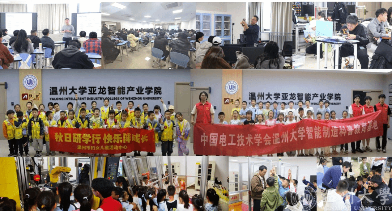 2025年基地面向中小学生开展了“AI+智能制造”“AI创造营”“智能机器人的奇妙世界”等多场系列科普活动,为校内大学生举办 “温青 AI 工坊” 系列讲座,并为永强中学、温州市教师教育院、浙江电力变压器有限公司等多所学校和企事业单位开展AI专题讲座。同时,面向中小学、高校教师及科研院所人员、企业高管与技术人员,开展省培、高研班及产教融合创新师资培训班;面向应届毕业生,开展温州市人社单片机应用、工业机器人应用与维护专项职业能力证书培训,以及四次人工智能训练师职业技能等级证书培训,全年各类活动累计参与超 3000 人次。基地负责人被温州市双屿中学与温州市第二实验中学聘任为科学副校长。