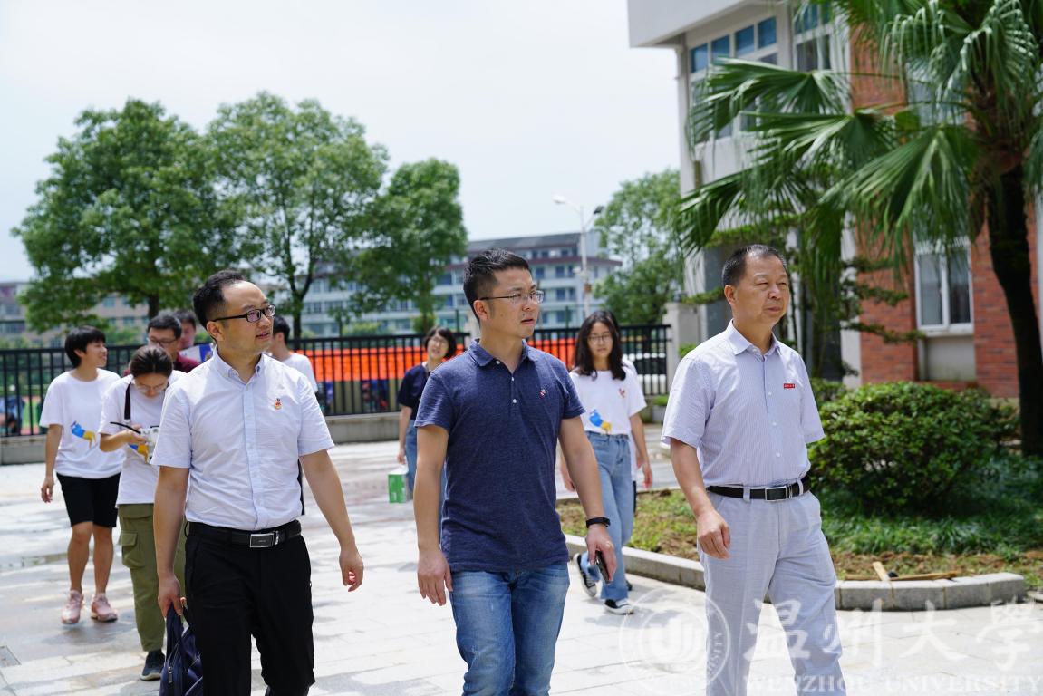 7月12日上午MG冰球突破官网网站党委委员、纪委书记吴金法在校团委副书记丁强、学院党委副书记曾蓓蕾等老师的陪同下来到MG冰球官网“童馨”暑期社会实践队在丽岙华侨小学的分队进行慰问,并给同学们带来慰问品。