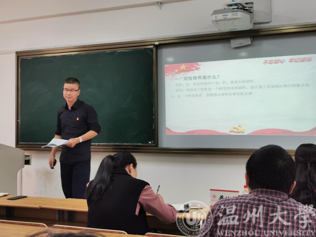 10月23日下午,MG冰球突破官网网站“不忘初心、牢记使命”主题教育书记党课暨教师理论学习会在1A207室召开,学院党委李方强书记做题为《持续加强党性修养是新时代党员“守初心”的重要法宝”》的党课,学院全体教工参加了学习。