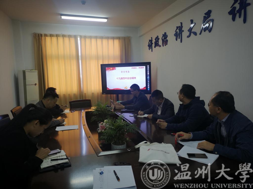 11月15日上午,MG冰球突破官网网站党委理论中心组在1A594召开本学期第四次学习会,学院全体班子成员和党委委员参加了学习会议。学习会由学院党委书记李方强主持。本次学习会集中学习党的十九届四中全会精神。
