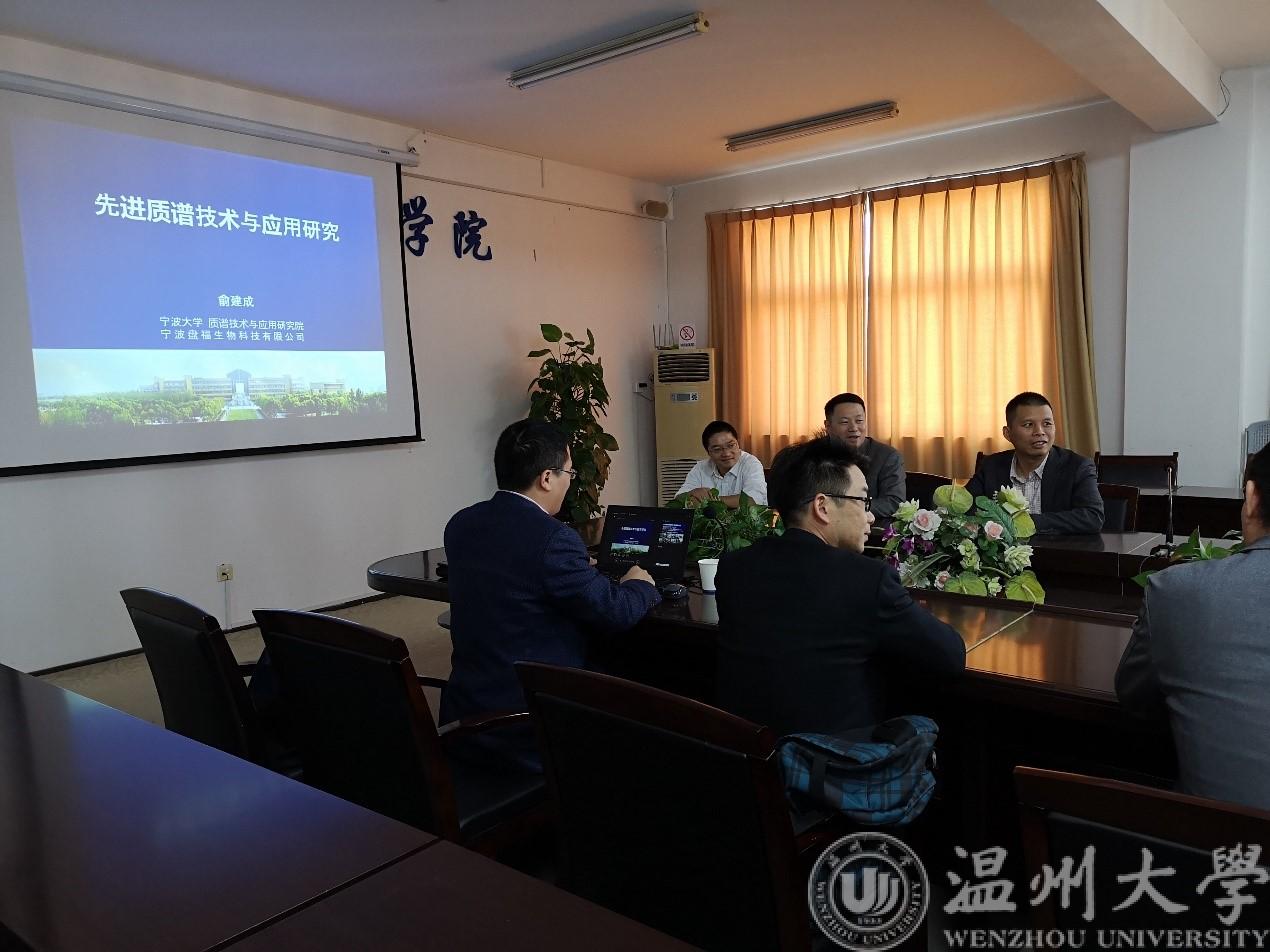 2019年11月14日星期四下午3点半,MG冰球官网邀请到宁波大学质谱技术与应用研究院副院长俞建成研究员做题为“先进质谱技术与应用研究”的精彩学术报告。报告由汪鹏君院长主持,相关专业的老师和研究生聆听了报告。