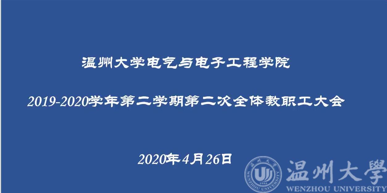 4月26日上午,MG冰球突破官网网站通过腾讯会议召开了2019-2020学年第二学期第二次全体教职工大会暨理论学习会。学院全体教职工参加会议,会议由学院党委书记李方强主持。