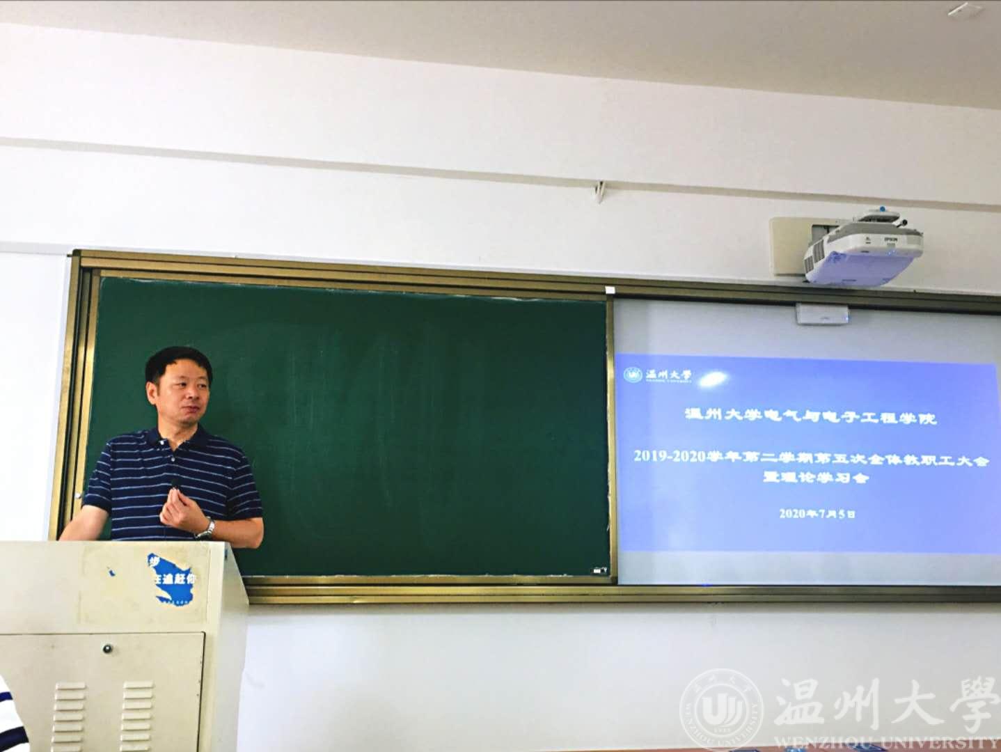 7月5日上午,MG冰球突破官网网站在南校区1号楼A207召开2019-2020学年第二学期第五次全体教职工大会暨理论学习会。会议由学院党委书记李方强主持,全院教职工参加会议。