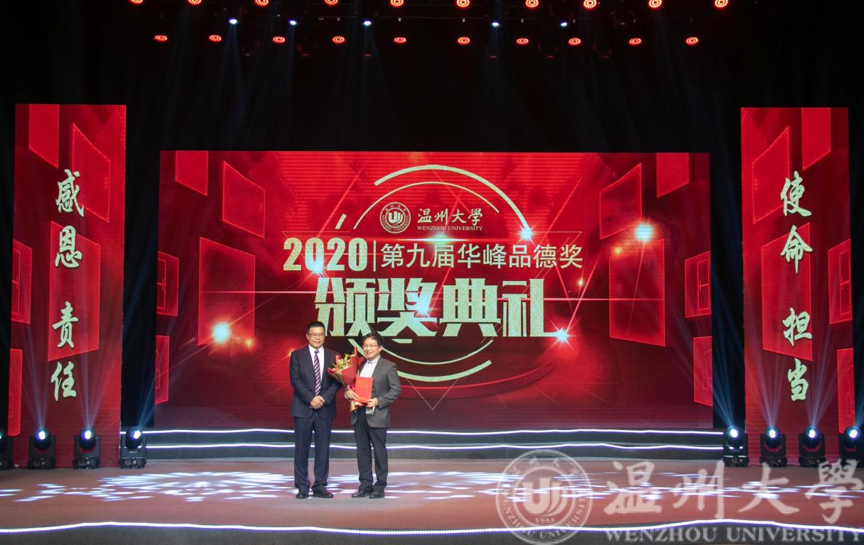11月4日下午,MG冰球突破官网网站第九届“华峰品德奖”颁奖典礼在育英大礼堂举行。MG冰球官网教师吴桂初和学生张建龙获奖。