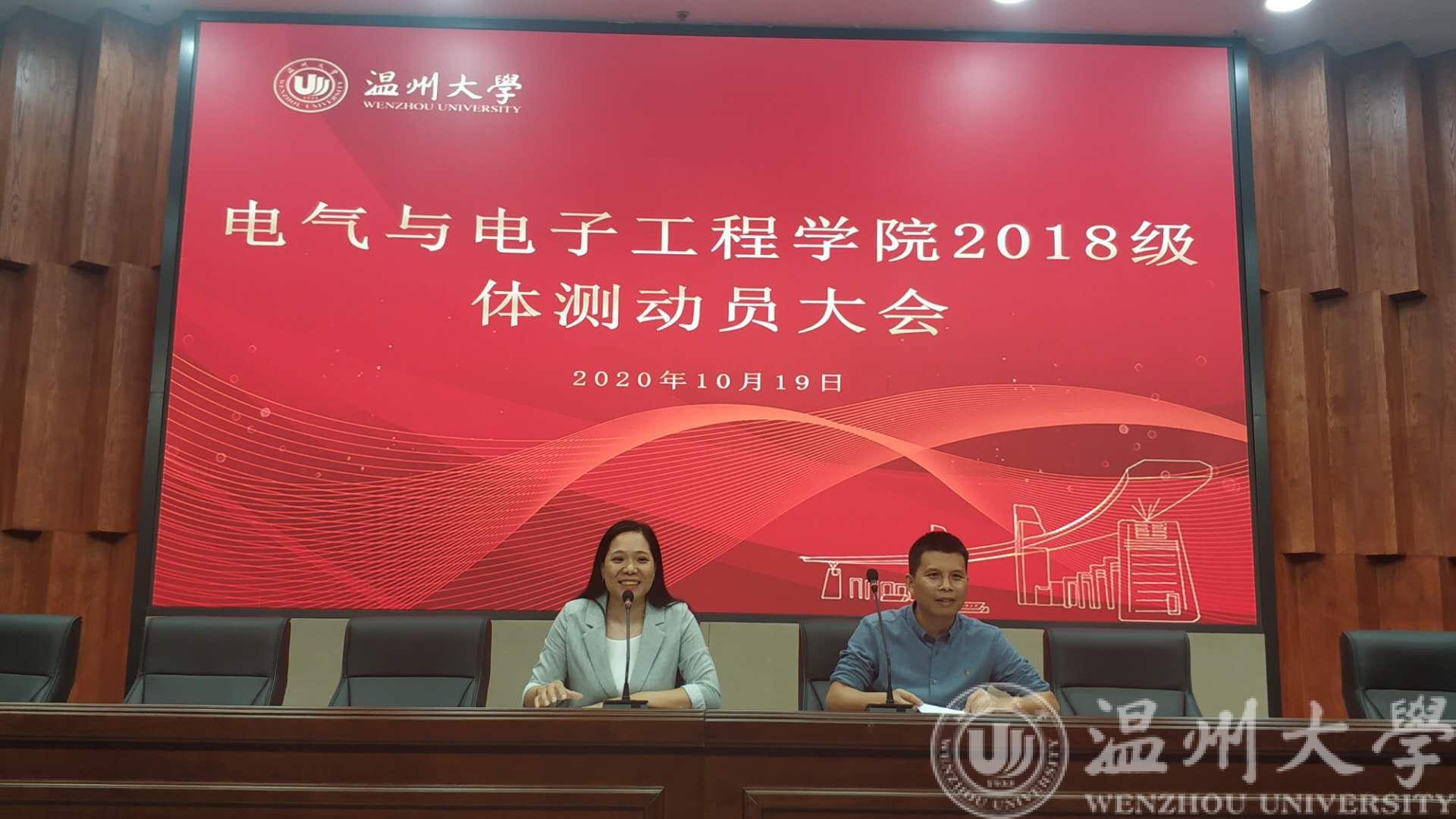 为更好的迎接本次抽测,学院领导高度重视,10月19日专门召开2018级全体同学体测动员会,学院教学副院长陈孝敬老师、学院副书记曾蓓蕾老师对体测相关注意事项、学院相关政策给予说明。同时前期对接体育健康学院对于部分困难学生进行精准帮扶训练,18级班主任、学工办辅导员积极参与帮扶训练工作,齐心协力助力本次抽测工作。