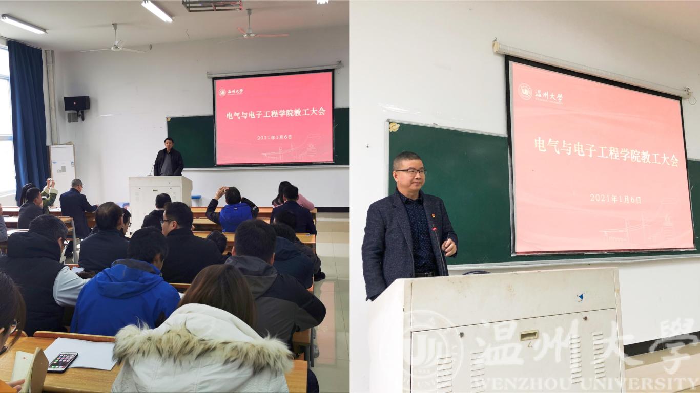 会上汪鹏君院长向全体教职工通报学院的发展状况,回顾 2020年的重大举措,展望新一年的工作重点。李方强书记在会上强调寒假要避免去中高风险地区,假期不可懈怠防疫工作,离温需及时报备,根据疫情形势和教育教学进度,优化调整寒假放假时间。