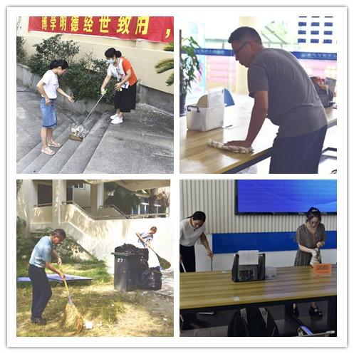 近期步入初秋,温度也在逐步下降,校园内各类花树的更替为原本整洁的道路蒙上了一层碎叶,同时学校教学楼周边也多了不少因校园建设而导致的杂物,教室的玻璃也因风吹而蒙上了厚厚的灰尘。下午1:30,师生党员们带着劳动工具,深入校园的各个角落,师生党员们拿着各类清扫工具在学校教学区域开始劳动:擦窗户、拾垃圾、理枯枝、清废品……集中力量对校园环境卫生进行整治,共同清理、维护学校学习生活环境,同时积极倡导健康文明生活方式。