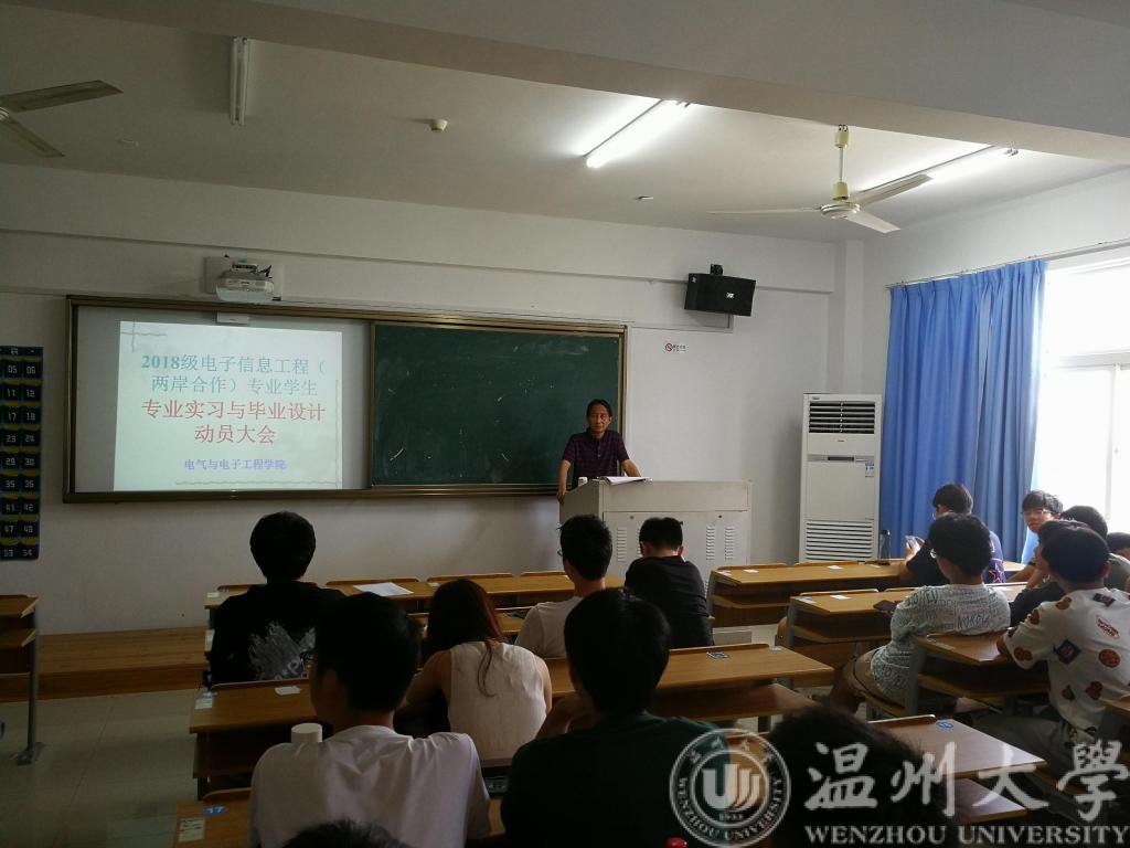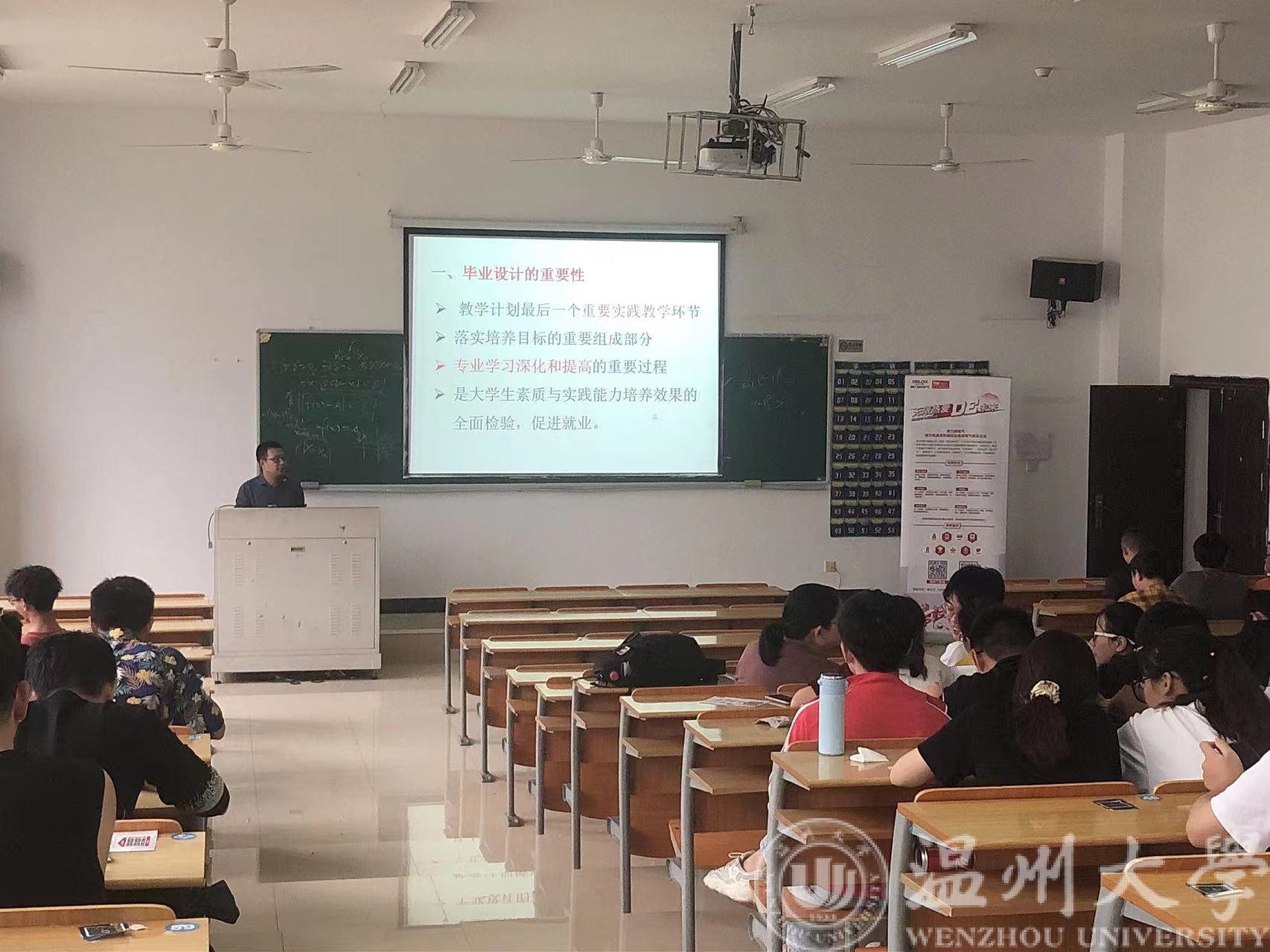 电科专业负责人庄友谊老师,电气系副主任闫正兵老师和电信(两岸合作)专业负责人郑崇伟老师,他们分别给同学介绍了毕业设计(论文)的要求,敦促毕业班的同学充分了解毕业设计各个环节的任务,把握好时间点,按照要求和规范顺利完成毕业设计(论文)工作。