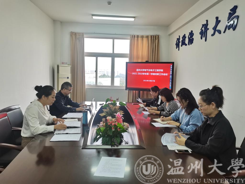 10月27日上午,电气电子学院妇联在1A504会议室召开2021年下半年妇联工作会议,院党委书记李方强、工会主席潘海鸥及学院妇联执委参加会议,会议由妇联主席曾蓓蕾主持。