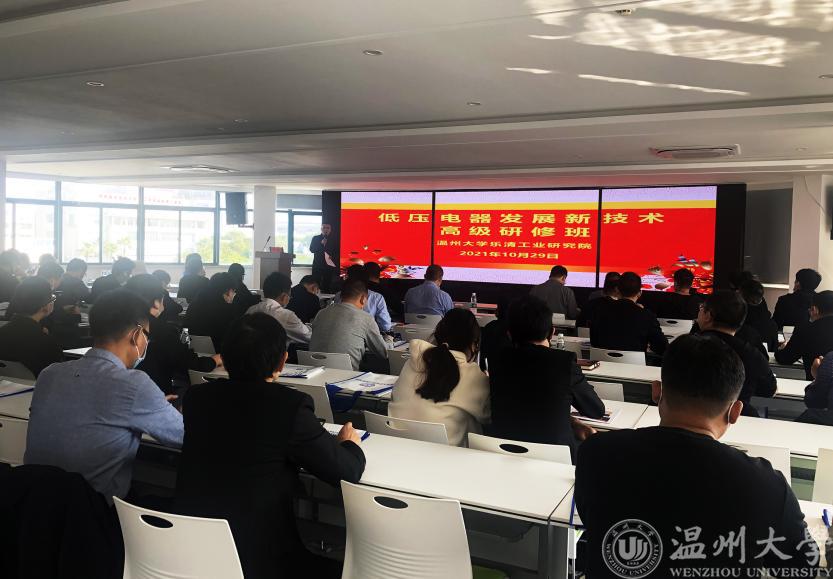 10月29-30日,由温州市人社局主办、MG冰球突破官网网站技术与管理人才培训中心、MG冰球突破官网网站乐清工业研究院承办的“低压电器产业新技术高级研修班”在MG冰球突破官网网站乐清工业研究院如期开班,本次研修班邀请了MG冰球突破官网网站舒亮教授、浙江安防职业技术学院张丽娜副教授、温州职业技术学院电气电子工程系主任苏绍兴教授、MG冰球突破官网网站李靖教授、MG冰球突破官网网站郭凤仪教授、福州大学电气工程与自动化学院汤龙飞副教授为学员授课。来自电气科技企业技术负责人及技术人员80余人报名参加了本次研修班。