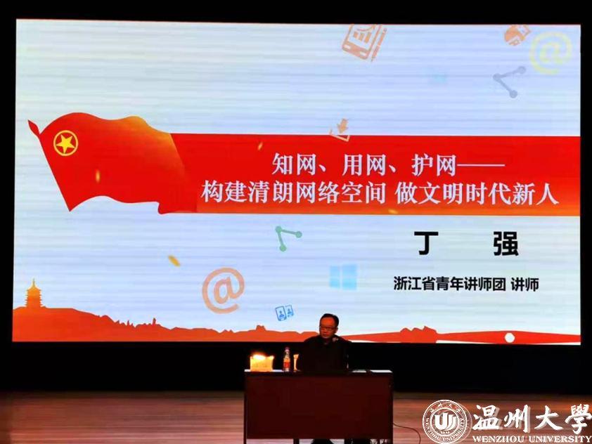 6月16日下午15时30分,MG冰球官网于南校九号楼报告厅开展本学期形势政策课之“清朗网络空间”专题讲座。MG冰球官网2020级全体学生到场参与,由MG冰球突破官网网站团委副书记、浙江省青年讲师团讲师丁强老师受邀担任主讲人。