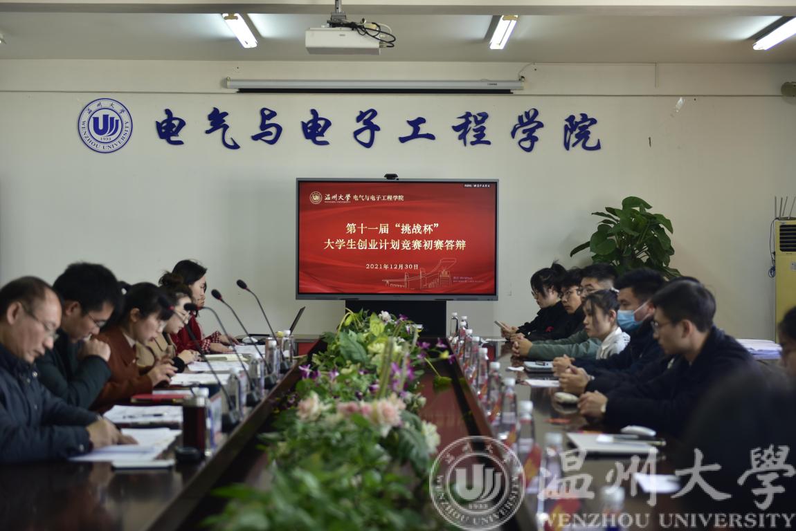 2021年12月30日,MG冰球突破官网网站第十一届“挑战杯”大学生创业计划竞赛初赛答辩会在1A502会议室开展。校团委副书记易招娣、创业学院副院长嵇小怡、电气电子学院副院长朱海永、电气电子学院教授钱祥忠、校团委学生科技创新指导中心副主任张淑娴担任评委老师。