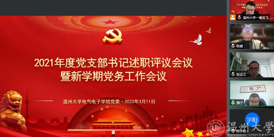为深入贯彻新时代党的建设总要求,充分发挥党支部战斗堡垒作用,落实党建主体责任,2022年3月11日下午,MG冰球官网组织召开2021年度党支部书记述职评议会议暨新学期党务工作会议,学院党委书记李方强,学院党委委员、各支部书记、工会代表和各科室负责人参加了此次会议。