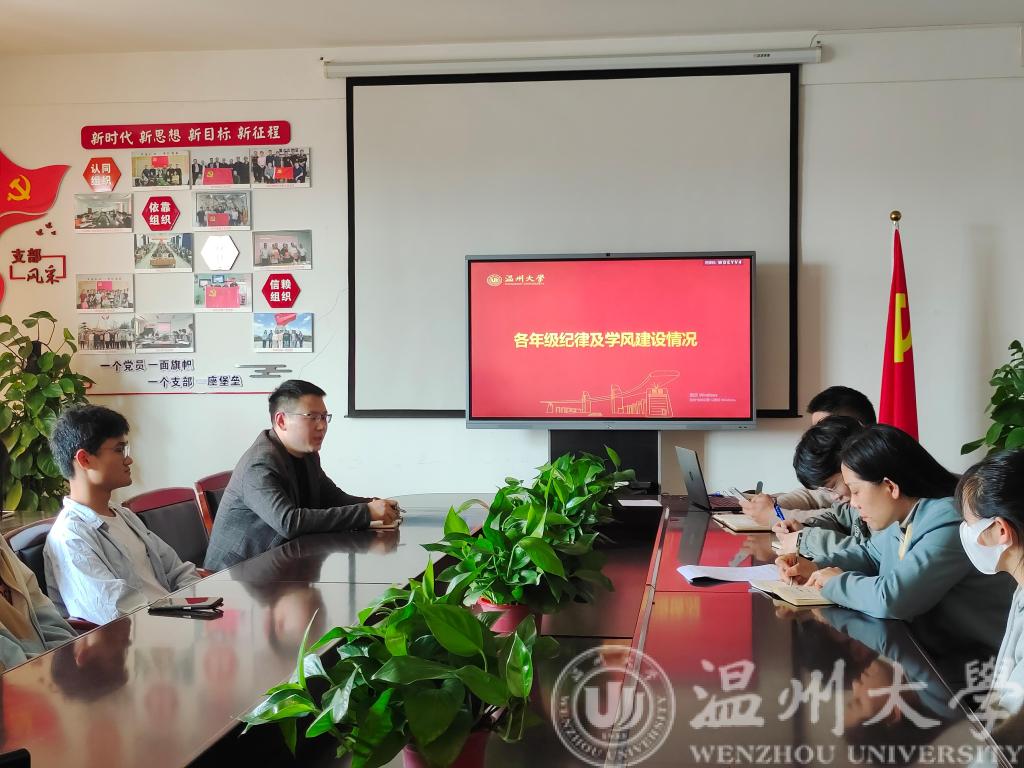 会议伊始首先由学院学风建设分管辅导员陈海彤老师对开学至今学院课堂纪律和早晚自习考勤情况进行介绍。紧接着各年级辅导员通报本年级学风建设及纪律方面存在的问题和不足。