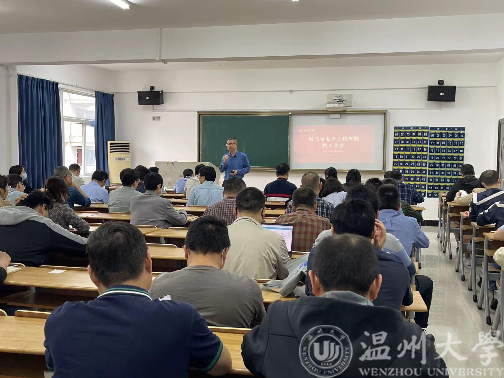4月27日下午,MG冰球突破官网网站召开全院教职工大会暨理论学习会。会议由学院党委书记李方强主持,全院教职工参加会议。