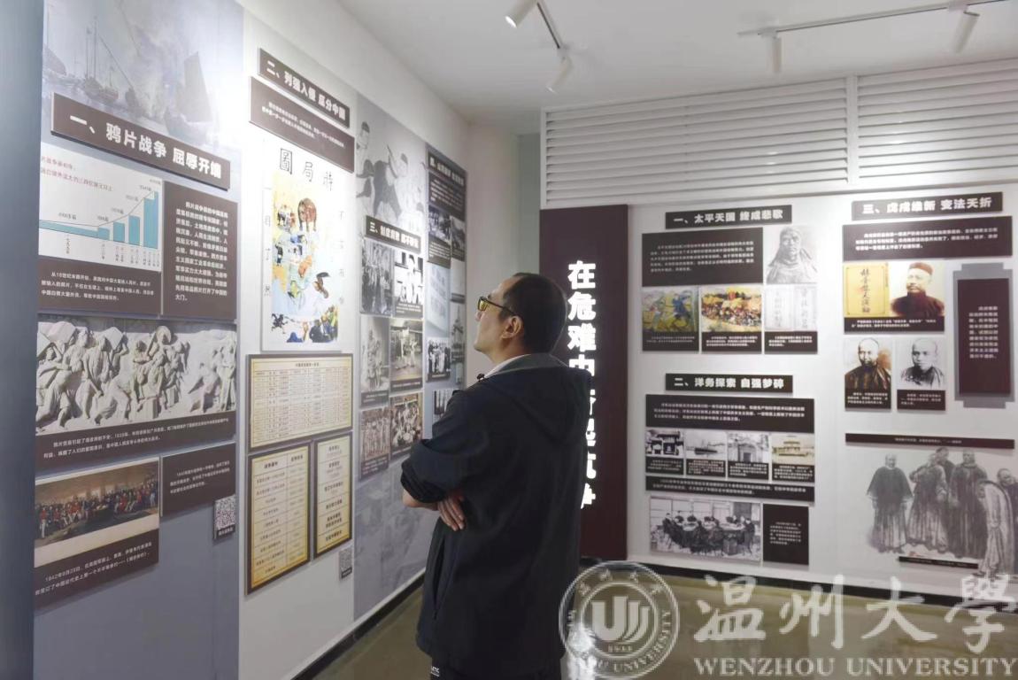 紧接着,跟随讲解员的脚步,进入到“中国共产党的初心和使命“长廊。该单元内涵丰富,鲜明展示了“初心使命的提出和践行、浙江干在实处走在前列勇立潮头、努力成为新时代全面展示中国特色社会主义制度优越性的重要窗口,把温州这不创新史继续写下去,特别要办好MG冰球突破官网网站等高等院校”等板块,展示“三地一窗口”的政治优势,教育引导青年当好“红色根脉”传承人、守护者。
