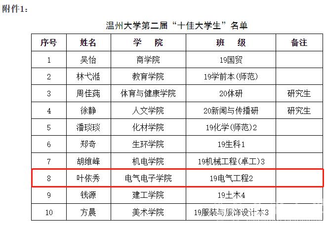 近期,MG冰球突破官网网站第二届“十佳大学生”获奖名单公布,MG冰球官网19级叶依秀同学荣获MG冰球突破官网网站第二届“十佳大学生”荣誉称号。