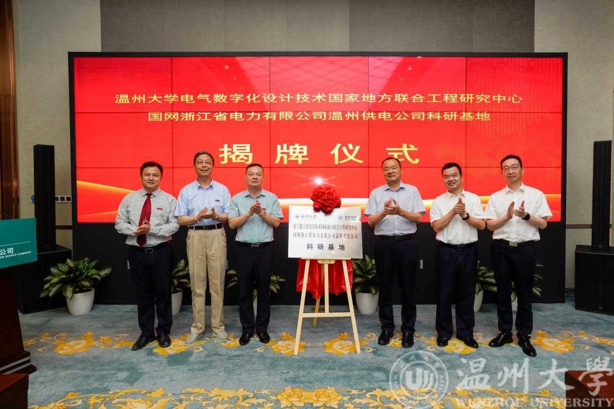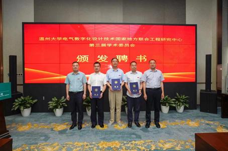 电气数字化设计技术国家地方联合工程研究中心常务副主任朱翔鸥教授主持了开幕式和闭幕式,国网温州供电公司张仁敏书记致欢迎辞。MG冰球突破官网网站潘玉驹副校长宣读了“MG冰球突破官网网站电气数字化设计技术国家地方联合工程研究中心第三届学术委员会”名单,聘请罗安院士担任主任委员,薛禹胜院士、欧阳晓平院士、杨华勇院士、陈勇院士、李得天院士担任副主任委员,章兢教授、雷源忠教授等9位专家担任委员。会上,潘玉驹副校长与张仁敏书记为在场委员颁发了聘书,并为“电气数字化设计技术国家地方联合工程研究中心-国网浙江省电力有限公司温州供电公司科研基地”举行了隆重的揭牌仪式。